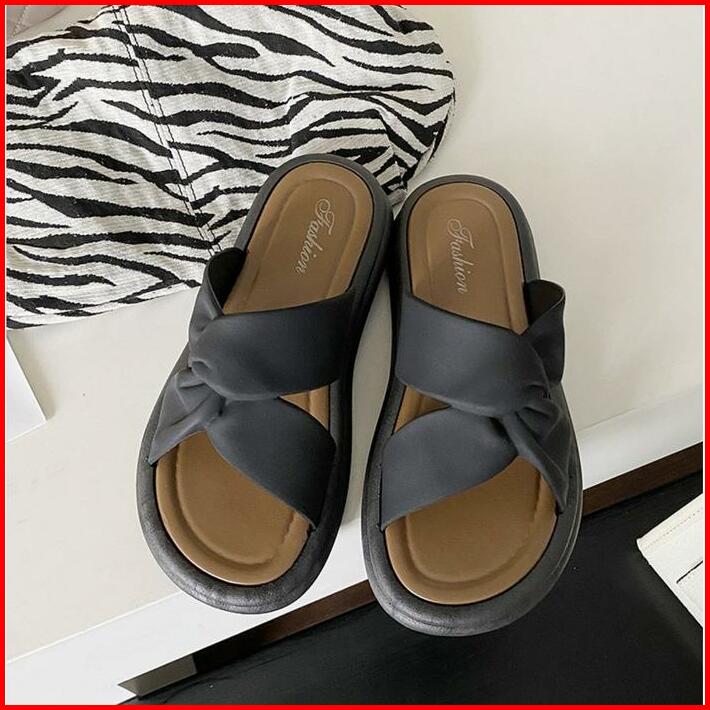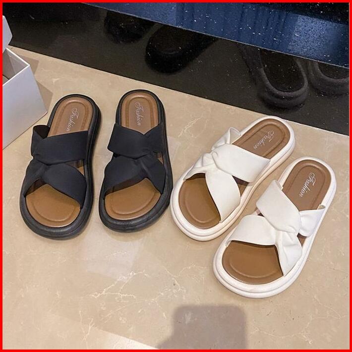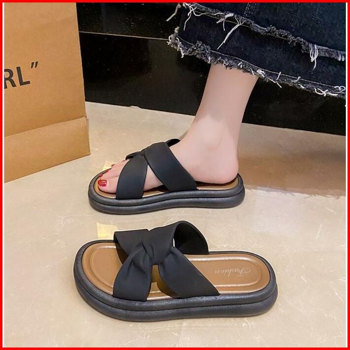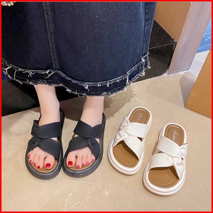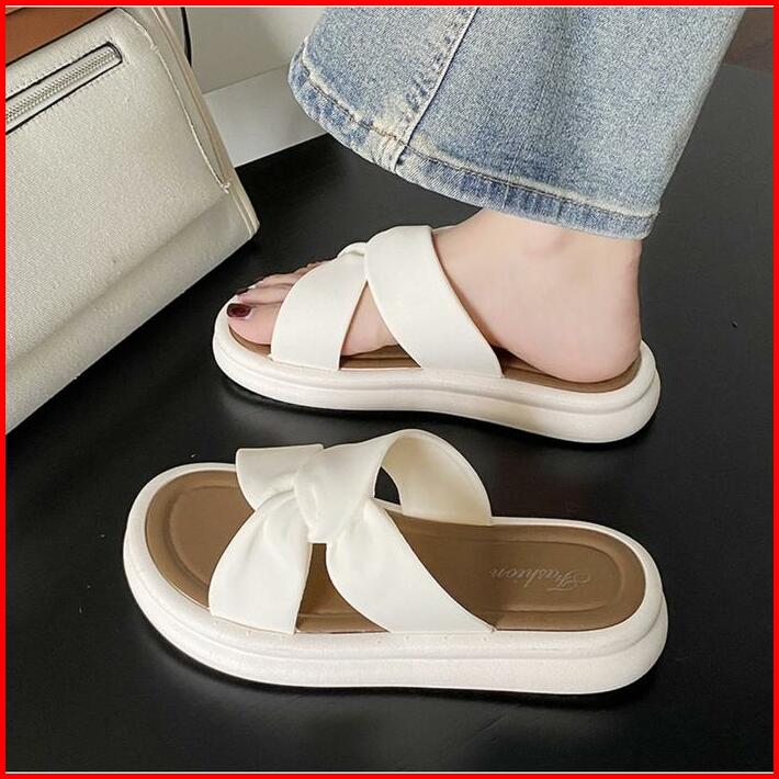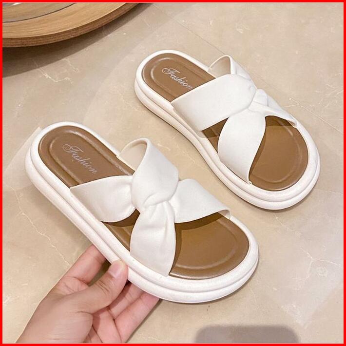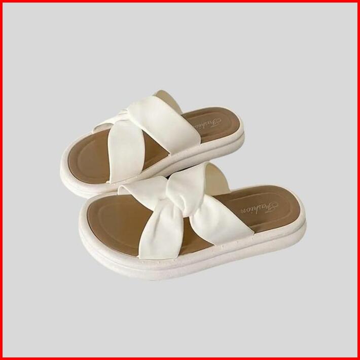 Okaido Sandal Selop Wanita Cewek Elegan Dan Anggun Model Korea Style Kekinian Sendal Karet Mewah Cokelat Putih Slip On P