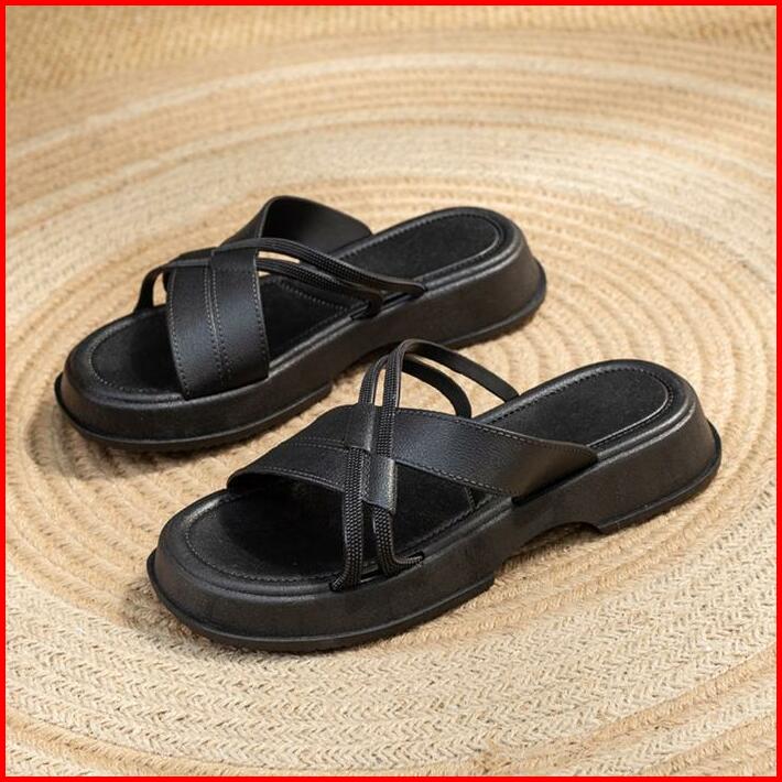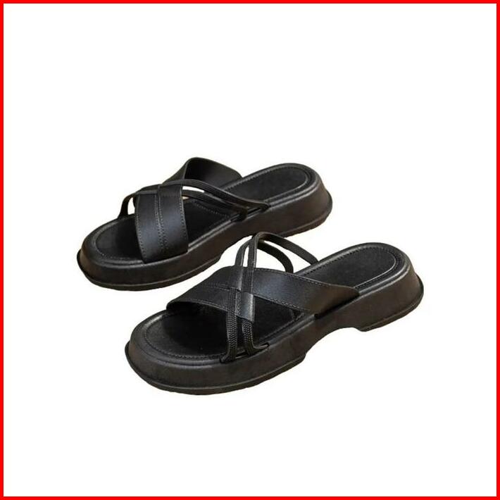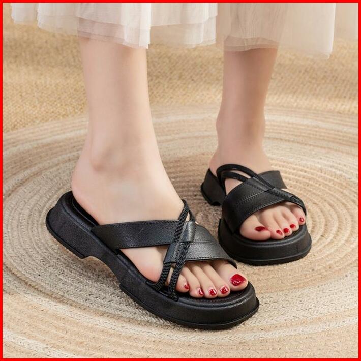 Okaido Sandal Tali Wanita Cewek Karet Model Korea Style Kekinian Nyaman Lembut Hitam Putih Sendal Selop
