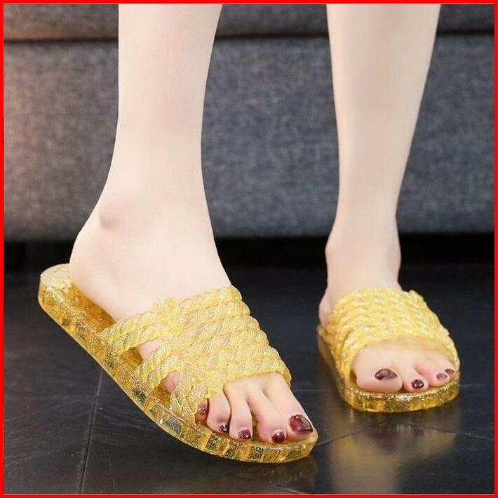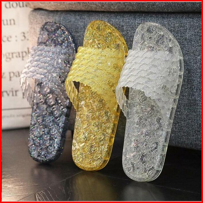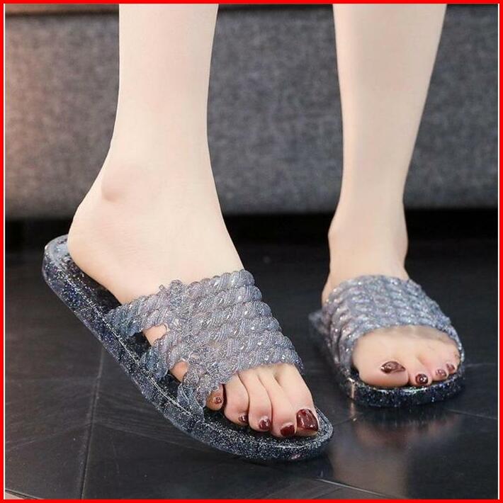 Okaido Sandal Selop Wanita Cewek Karet Jelly Transparan Geliter Model Korea Style Kekinian Sendal Anti Air Anti Licin