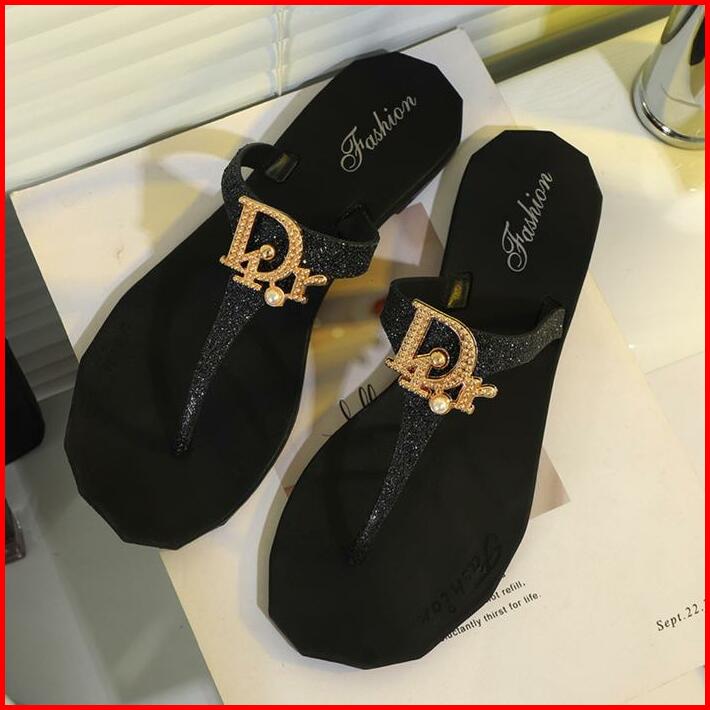 Okaido Sandal Jepit Wanita Cewek Mewah Elegan Fashion Model Korea Style Hitam Sendal Karet Jelly