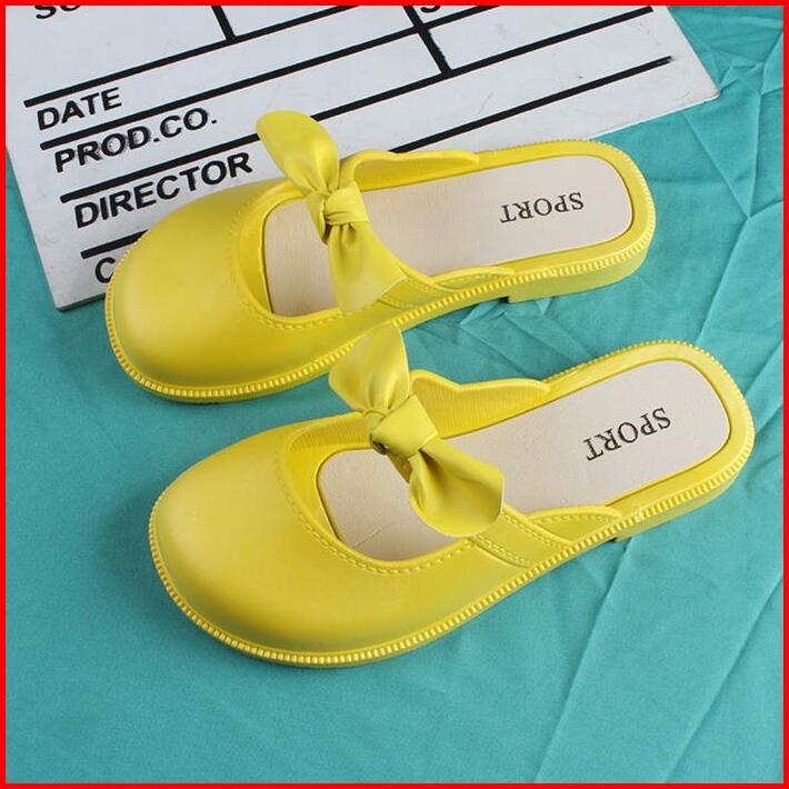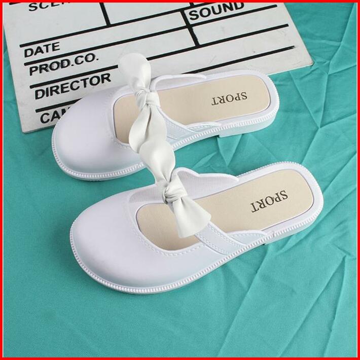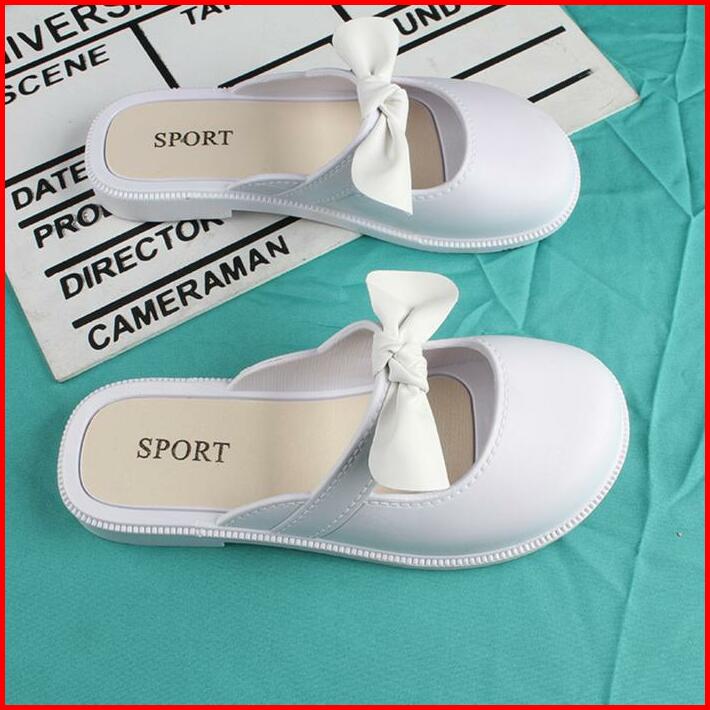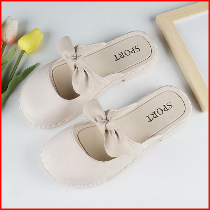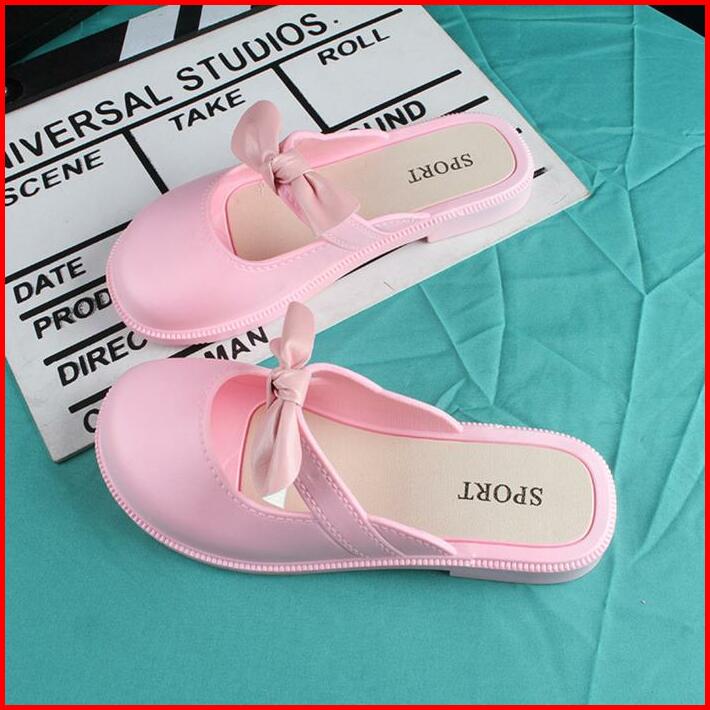 Okaido Sandal Sepatu Selop Cewek Wanita Pita Karet Model Korea Style Pink Putih Shoes Sendal Selop Perempuan Nyaman Lemb
