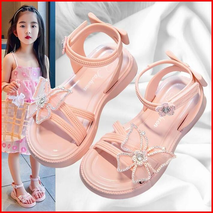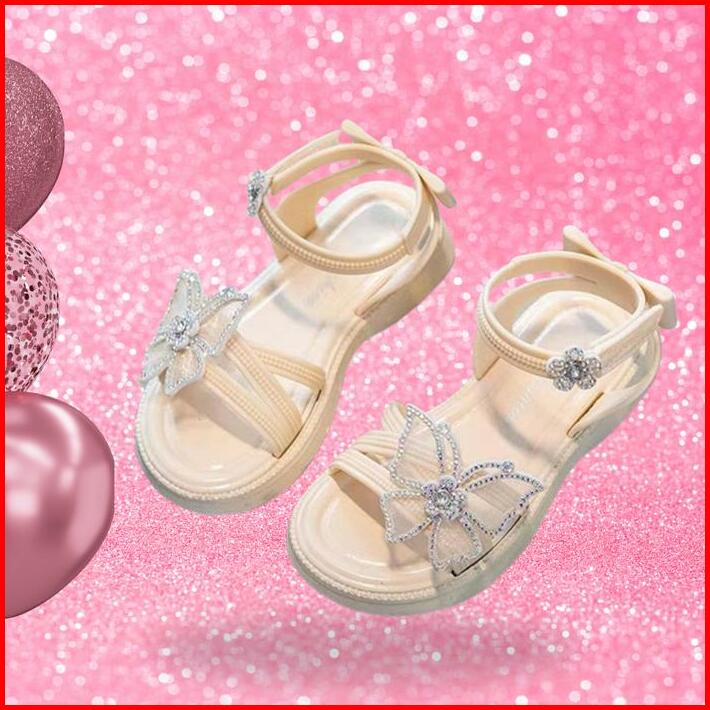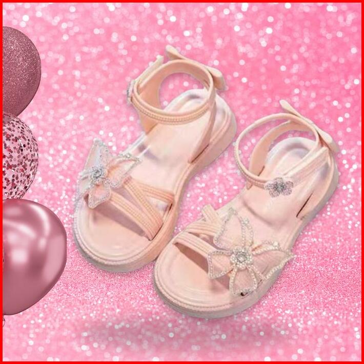 Okaido Sandal Anak Perempuan Kupu-kupu Anggun Karet Gaya Fashion Korea Style Kekinian Pink Putih Sendal Cewek Nyaman Lem