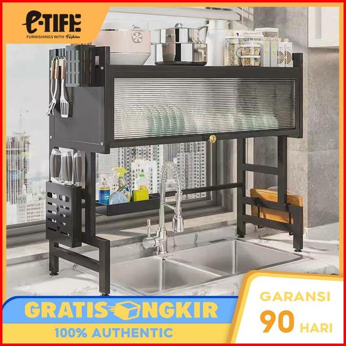 E-tife Rak Piring Tertutup Rak Piring Wastafel With Cover Stainless Steel Rak Dapur Rak Piring Gantung Cuci Piring Wasta