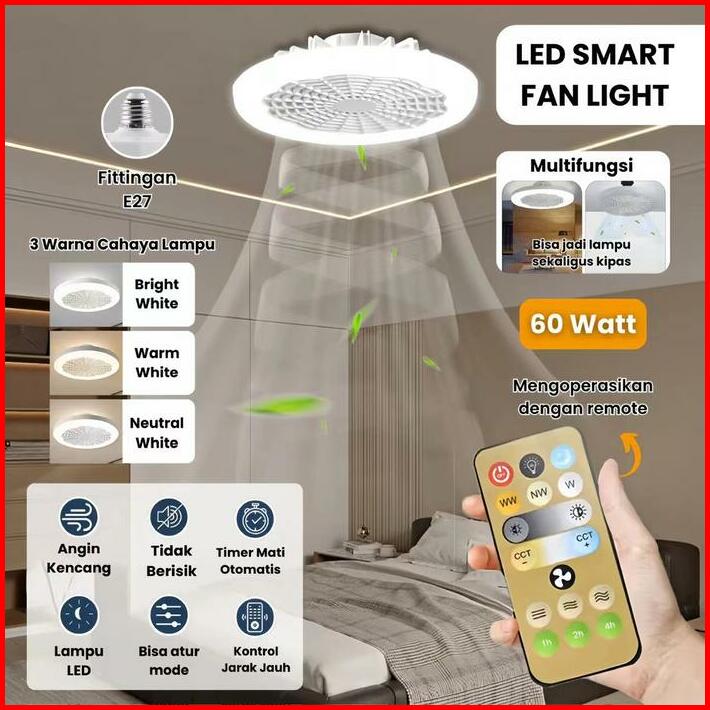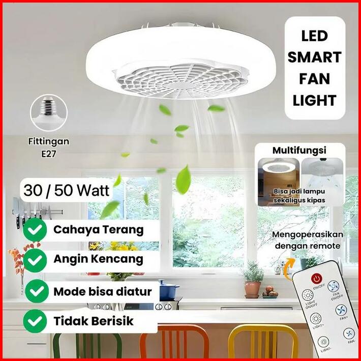 Lampu Kipas Angin E27 Remote 2in1 30w 50w 60w Led Plafon Fan Ceiling Dan Kipas Angin Wangi Led Smart Fan Light Lampu Kip