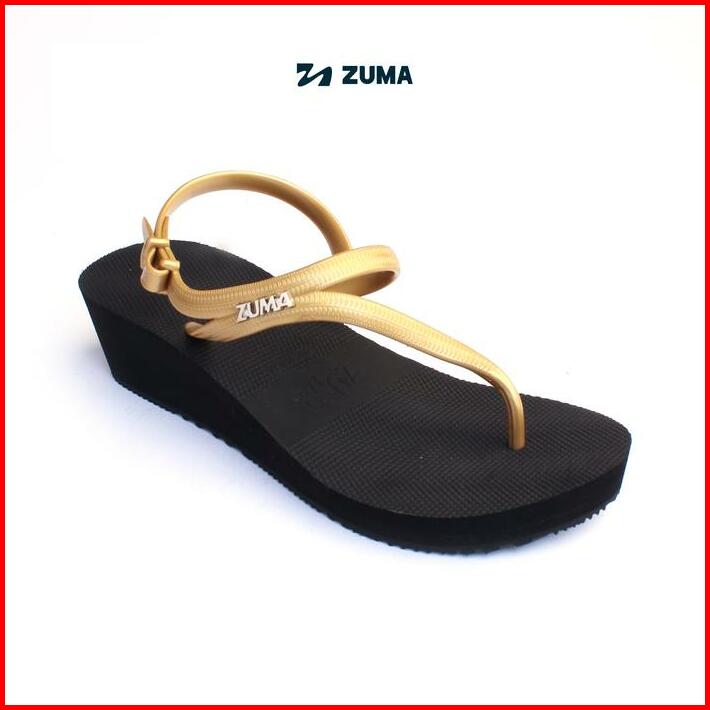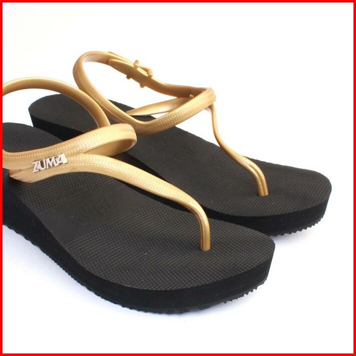 Zuma Women Freya 2 Black Sandal Jepit Wanita Wedges Karet Polos Hitam