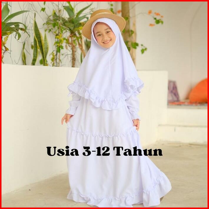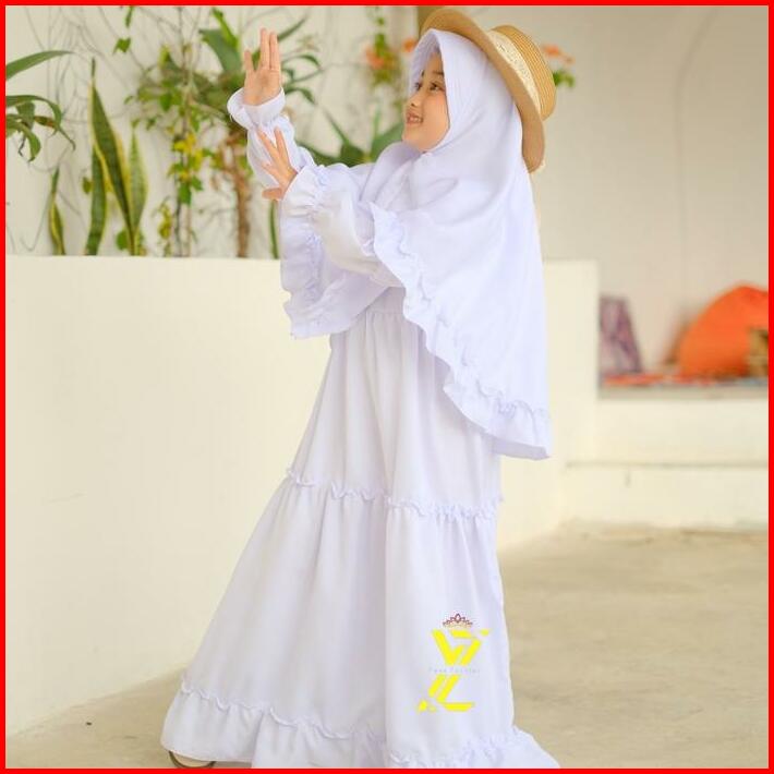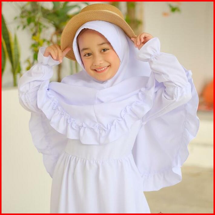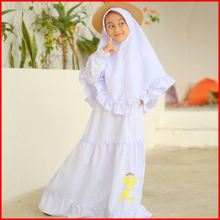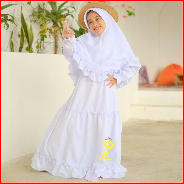 Yasmin Kids Baju Gamis Anak Perempuan Free Hijab Gamis Putih Anak Dress Muslim Remaja Baju Balita Lucu Gamis Anak 8-10 T