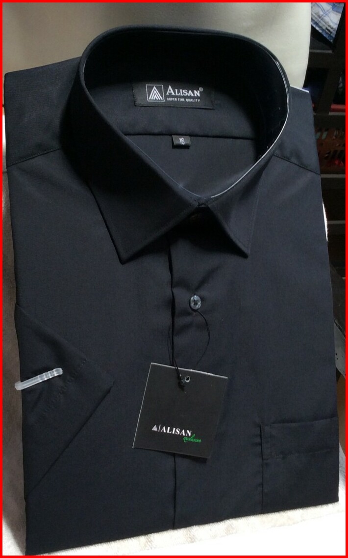 Alisan Kemeja Polos Reguler Lengan Pendek Hitam Size 16 5-17 5