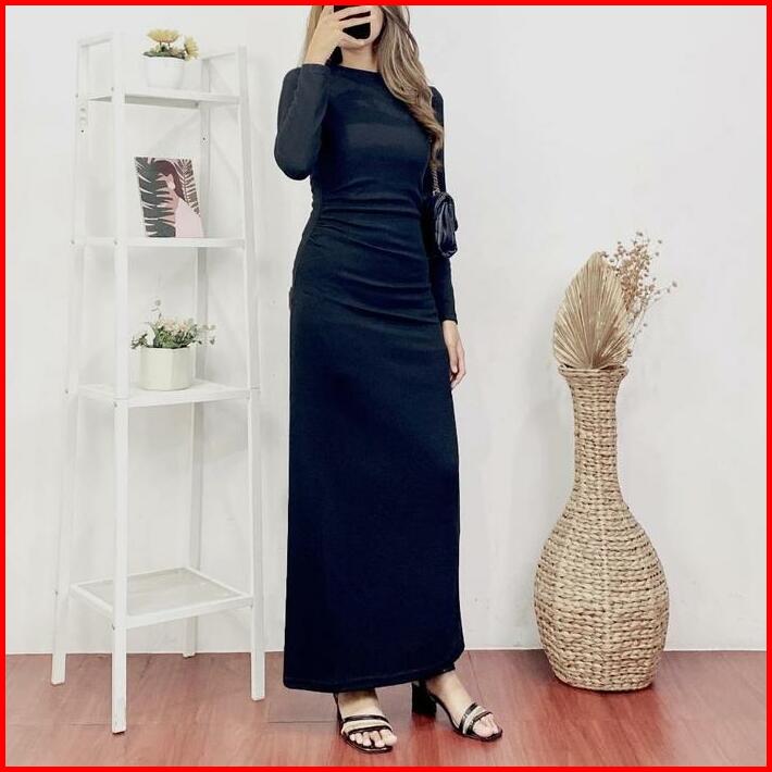 Orina Dress Wanita Knit Dress Terbaru 2025 Long Dress Knit Polos Press Body Baju Kondangan Dress Hitam Dress Panjang Wan