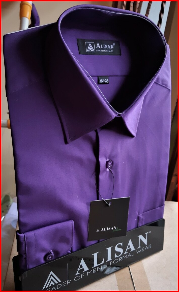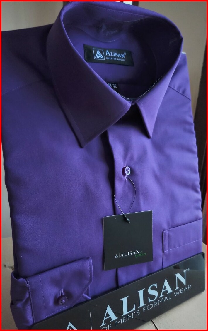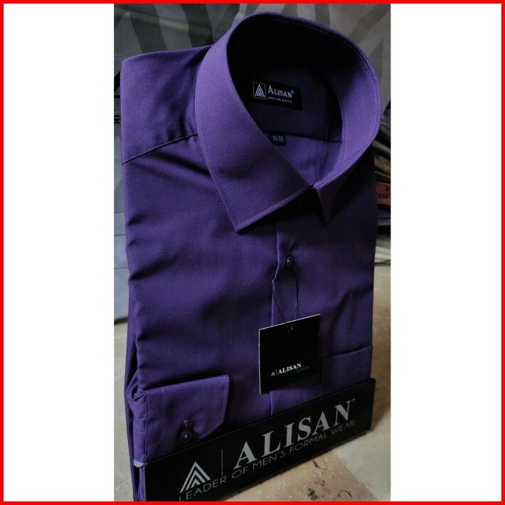 Alisan Kemeja Polos Reguler Lengan Panjang Ungu Tua