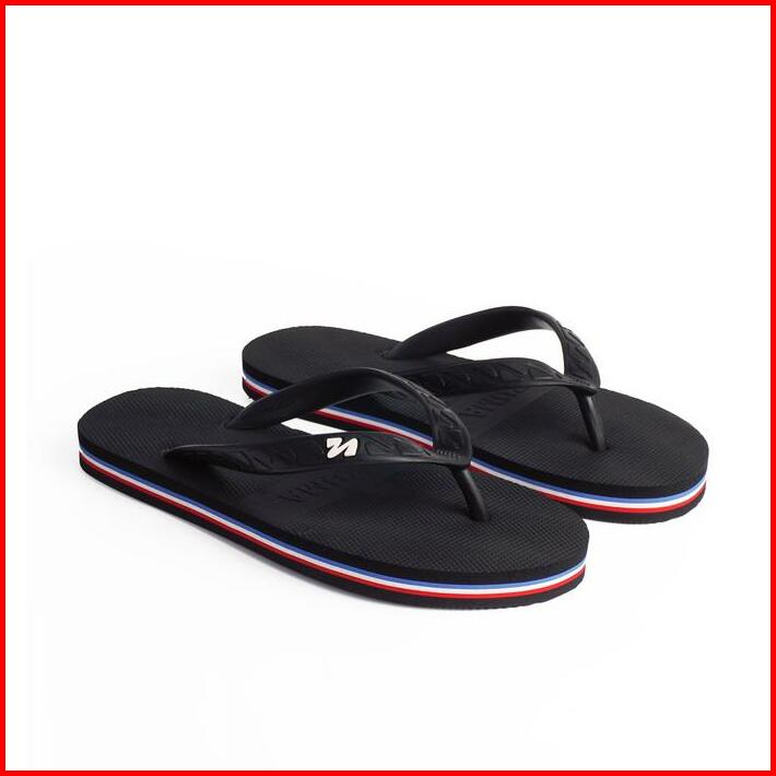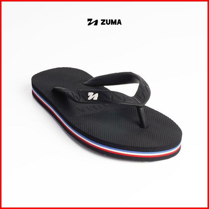Zuma Men Stripe 1 Black Blue Red Sandal Jepit Pria Karet Polos Hitam Biru Merah Putih