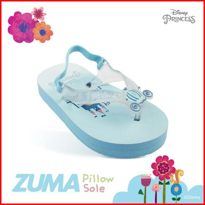 Zuma Baby X Disney Princess Cinderella Blue Sandal Jepit Bayi Karet Tali Belakang Biru Muda