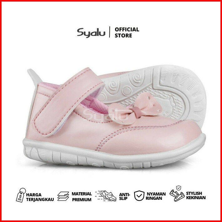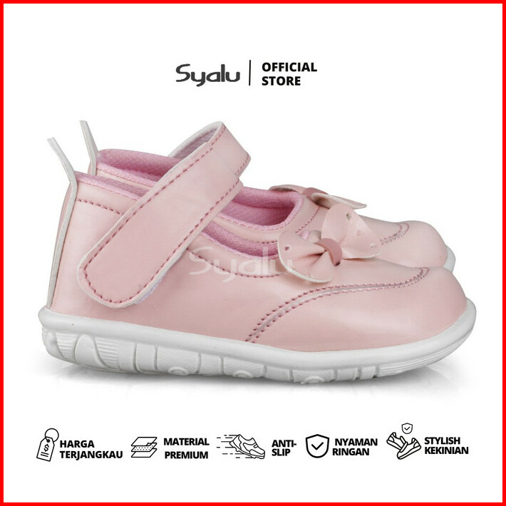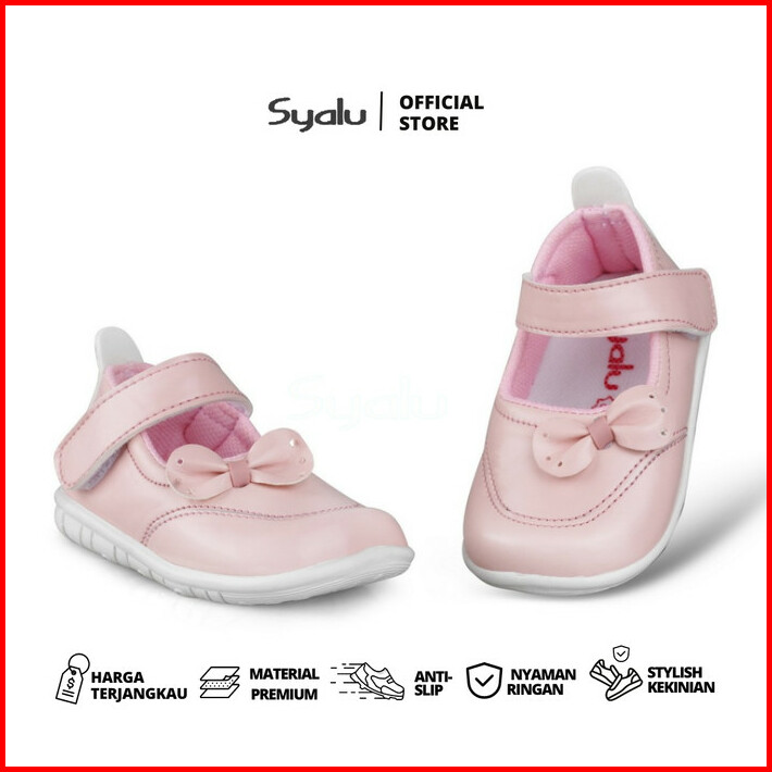 Sepatu Anak Perempuan Bahan Sintetis Variasi Pita C06 Pink