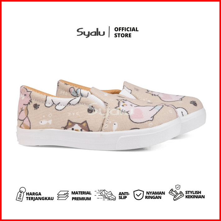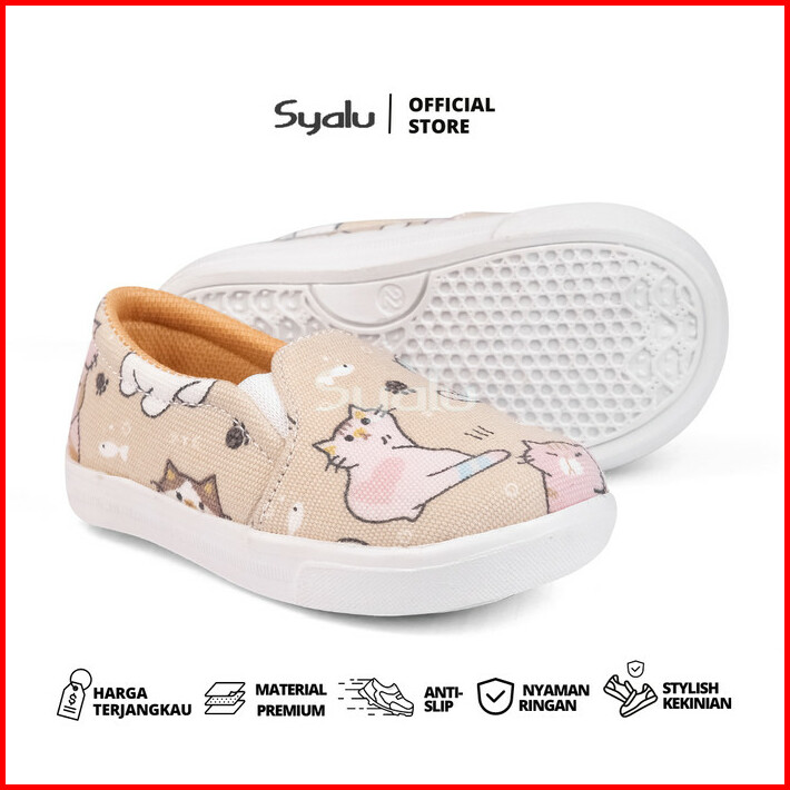 Syalu Sepatu Anak Slip On Kucing Cream 1-3 Tahun