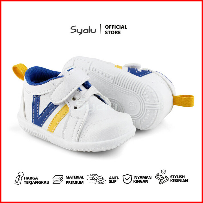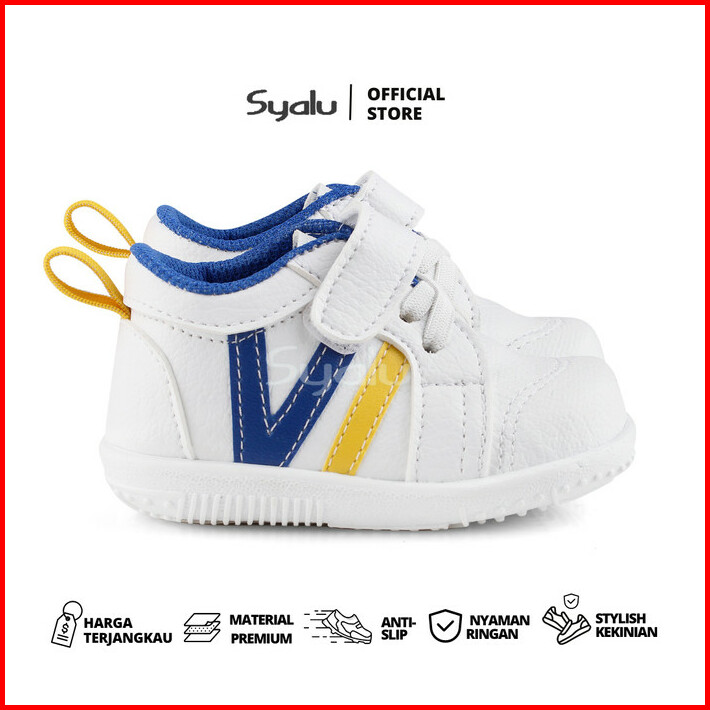 Sepatu Anak Cowok Perekat Umur 1 2 Tahun Bunyi Cit Strip Biru Kuning