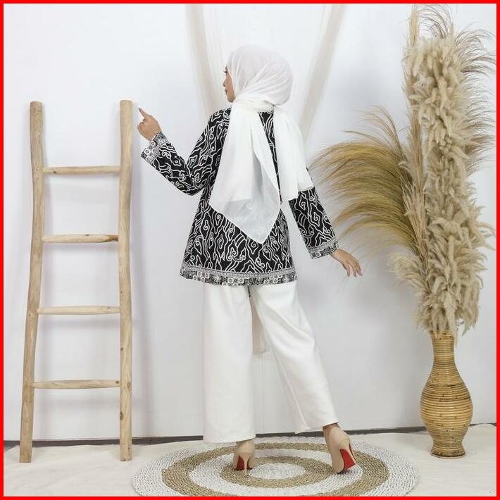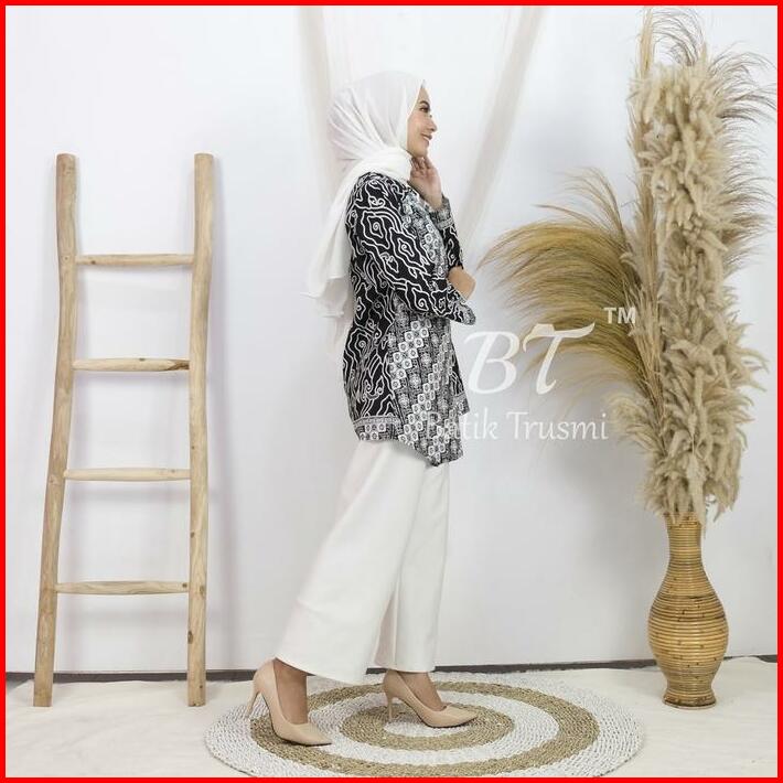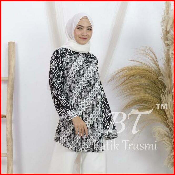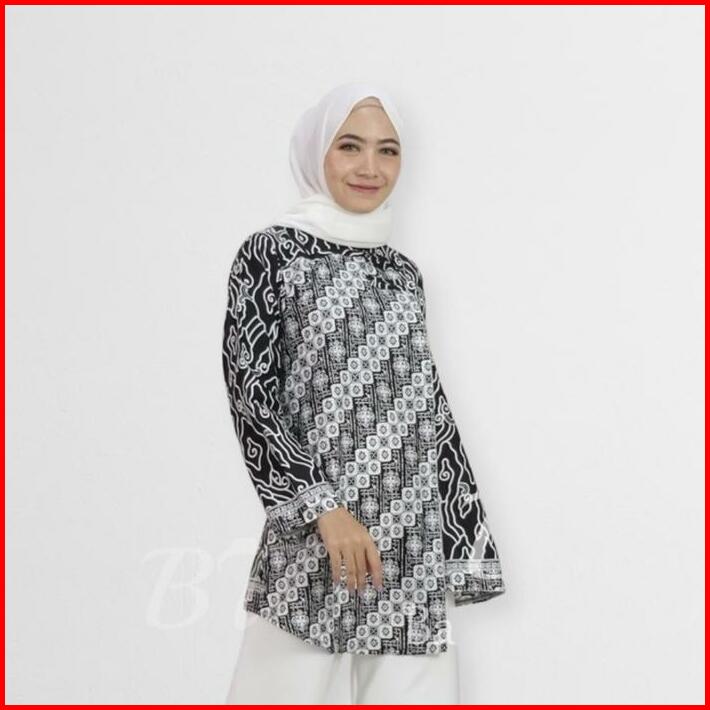 Batik Trusmi Blouse Atasan Wanita Mega Mendung Kombinasi Liris Mm Hp Baju Katun Motif Muslim Panjang Kerja Hitam Kantor