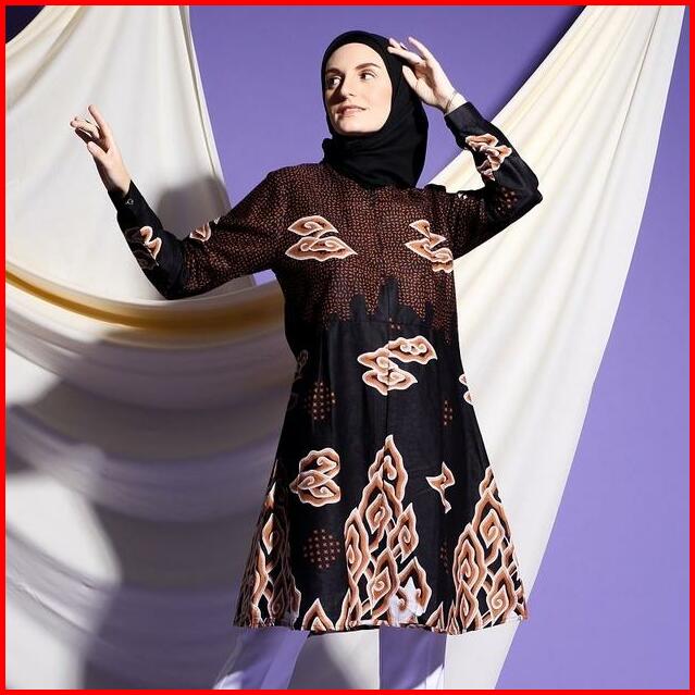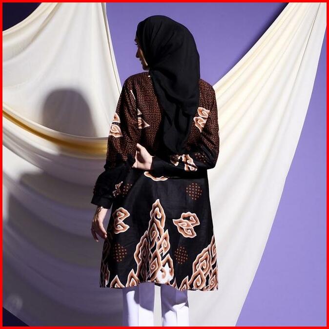 Batik Trusmi Atasan Wanita Tunik Batik Mega Mendung Rintik Htm Katun Motif Katun Motif Muslim Panjang Kerja Kantor