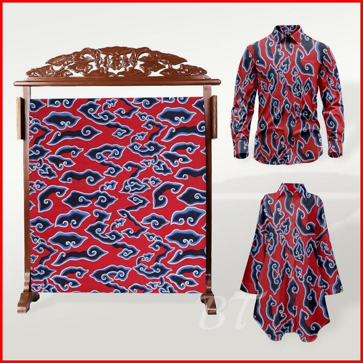 Batik Trusmi Kain Panjang Bahan Batik Motif Mega Mendung Merah Cocok Untuk Pakaian