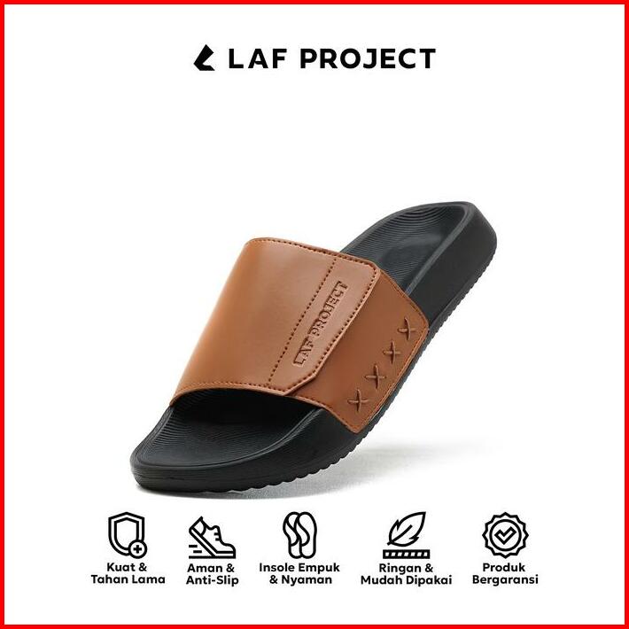 Sandal Slide Slip On Pria Hitam Cokelat Ringan Keren Anti Licin Sendal Slide Slop Selop Monoch Brown Laf Project Shoes