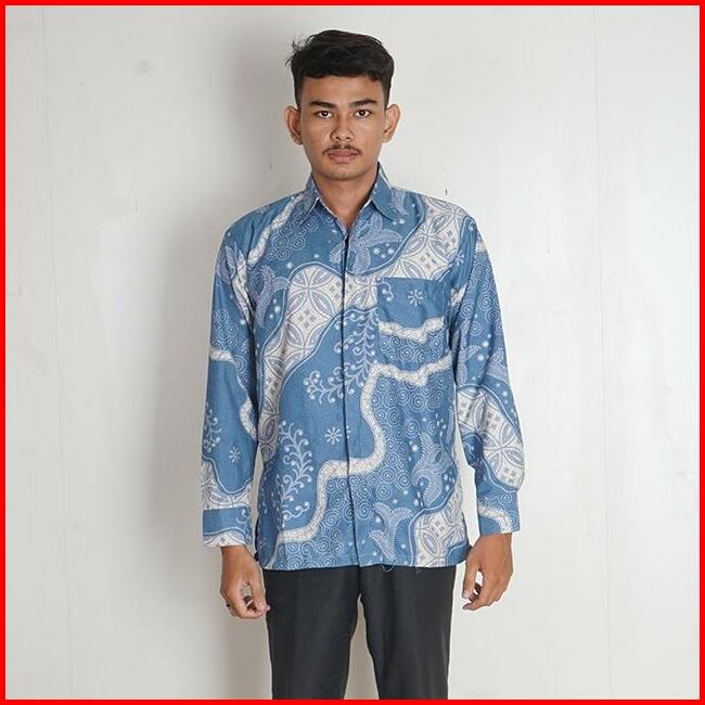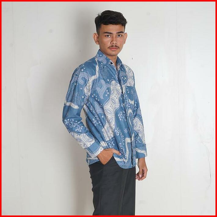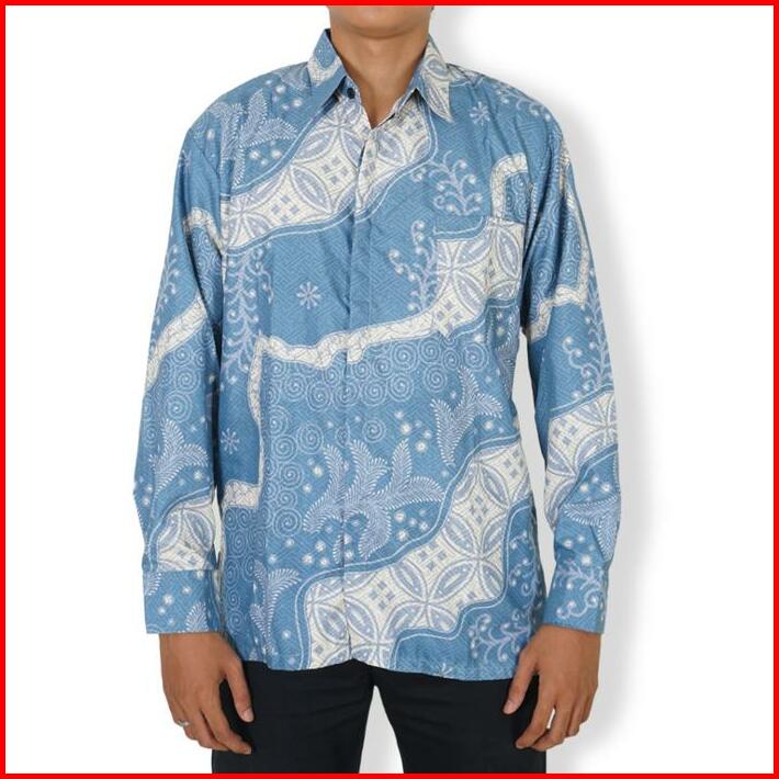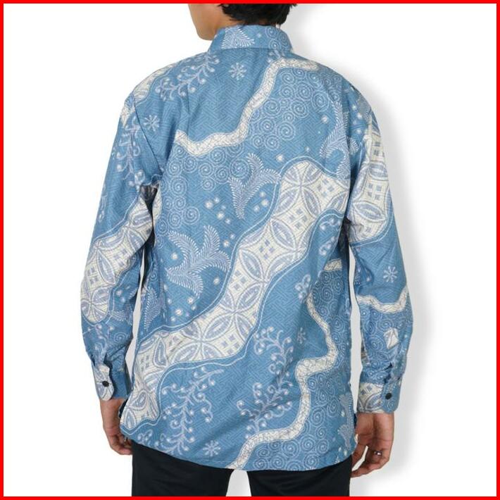 Batik Trusmi Kemeja Batik Pria Seragaman Motif Daun Biru Bul Baju Panjang Kombinasi Katun Pendek