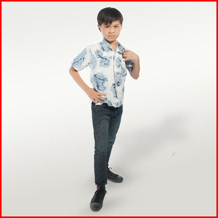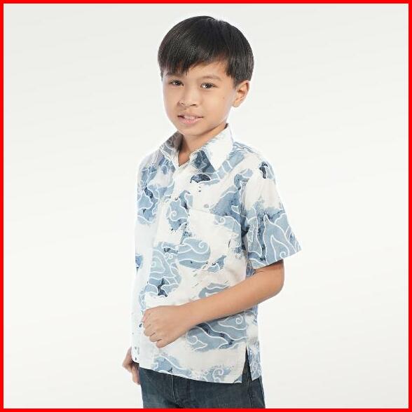 Batik Trusmi Atasan Batik Anak Laki-laki Lengan Pendek Motif Mega Mendung Bumi Baju Kemeja Fashion