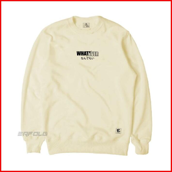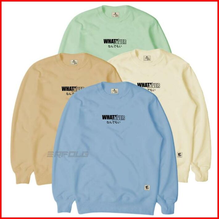 Sweter Crewnek Basic Oversize Pria Wanita Distro Erfolg Clothing Motif Sablon Print Whatever Switer Krewneck Cowok Oblon