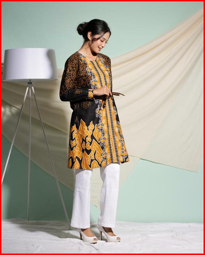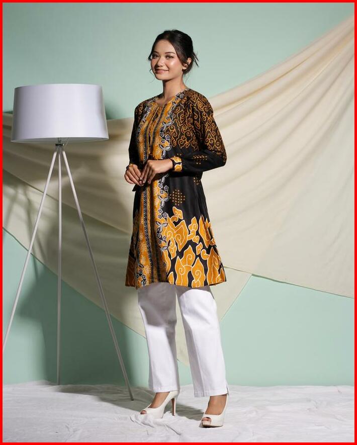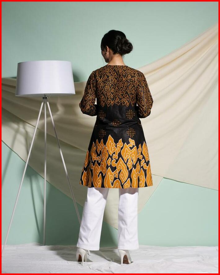 Batik Trusmi Atasan Wanita Tunik Batik Wanita Motif Mega Mendung Teku Kain Katun Muslim Nyaman Oversize Panjang Printing