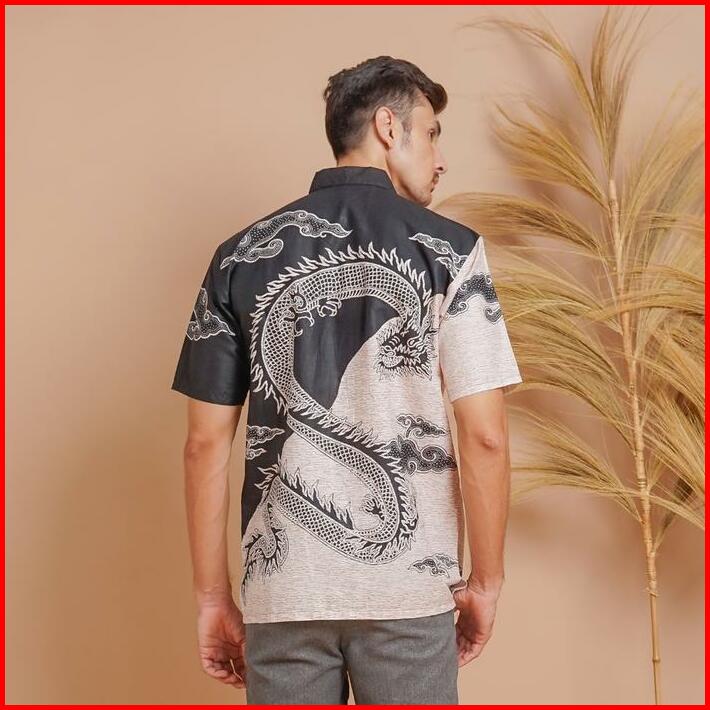 Batik Trusmi Kemeja Kerja Hem Kondangan Batik Murah Batik Pria Lengan Pendek Motif Mega Mendung Naga Hitam Dng Baju Katu