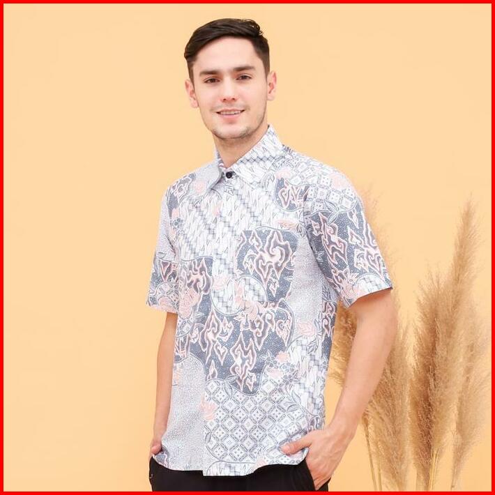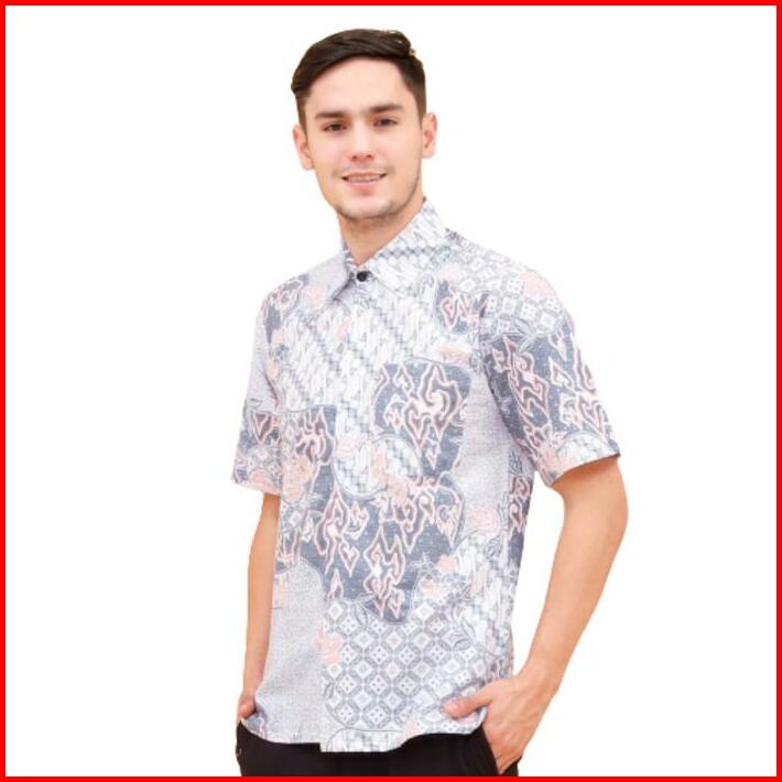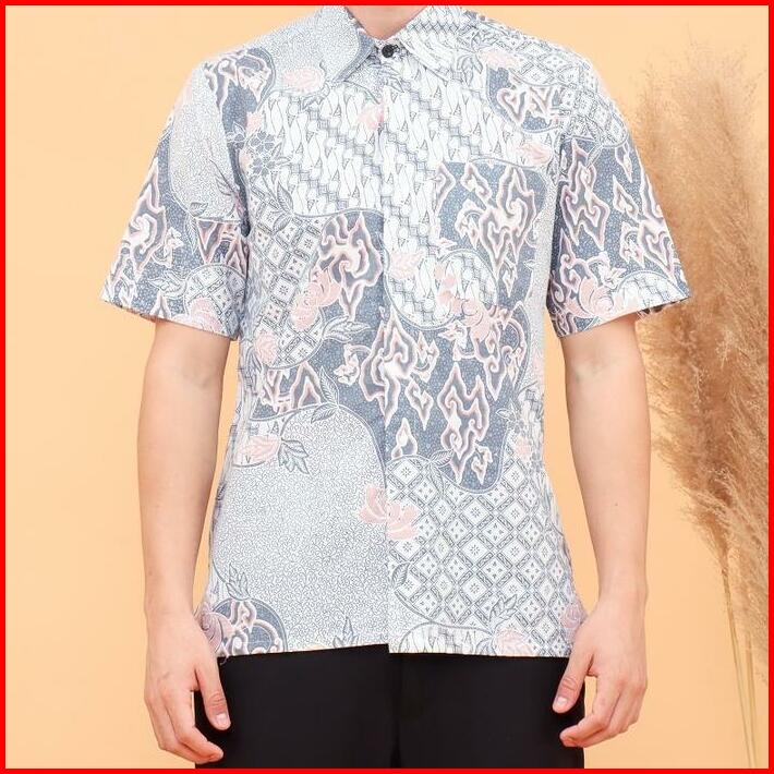 Batik Trusmi Kemeja Kondangan Pria Batik Hem Lengan Pendek Motif Mega Mendung Kombinasi Pastel Bna Baju Dewasa Katun Pan