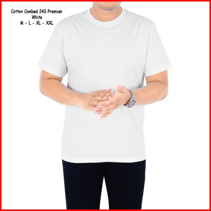Kaos Polos Lengan Pendek Cotton Combed 24s Unisex Casual Distro Putih