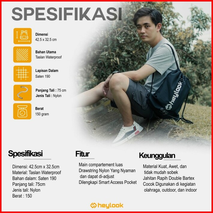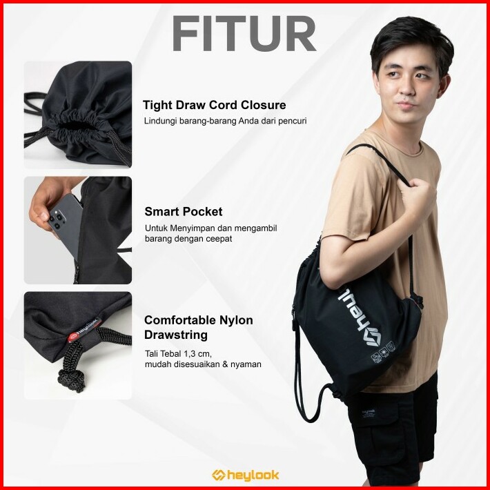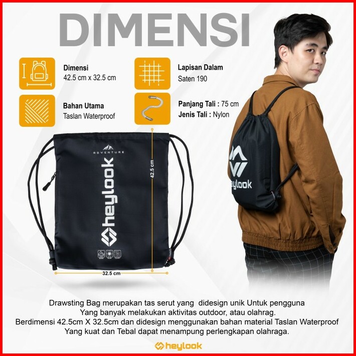 Tas Ransel Serut Pria Wanita Drawstring Gymsack Olahraga Heylook