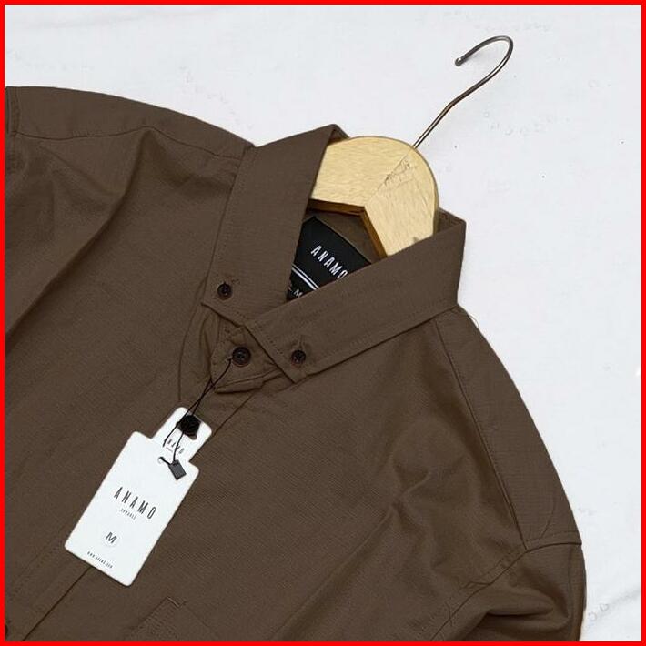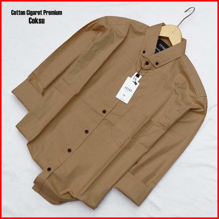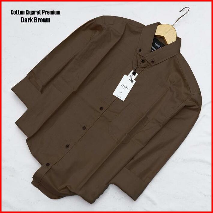 Kemeja Polos Lengan Panjang Kemeja Kantor Pria Katun Cigaret Brown
