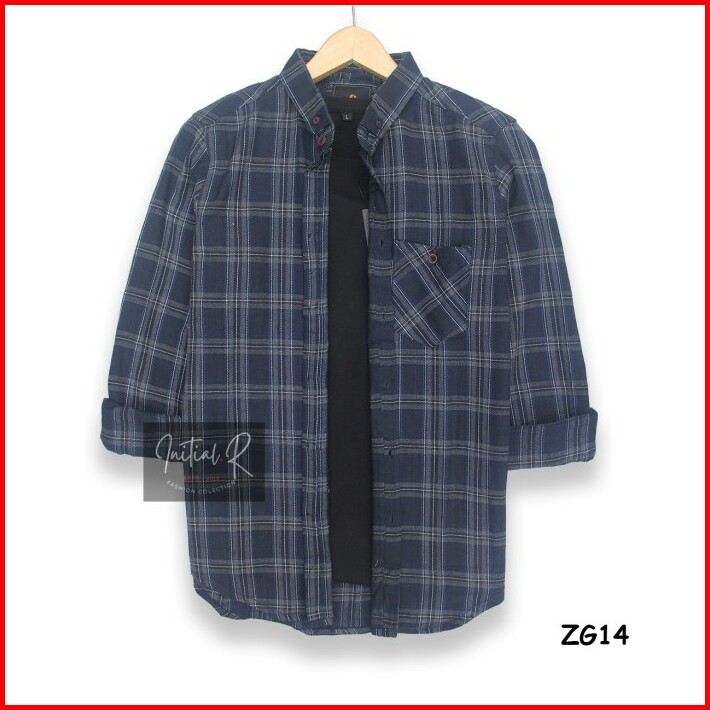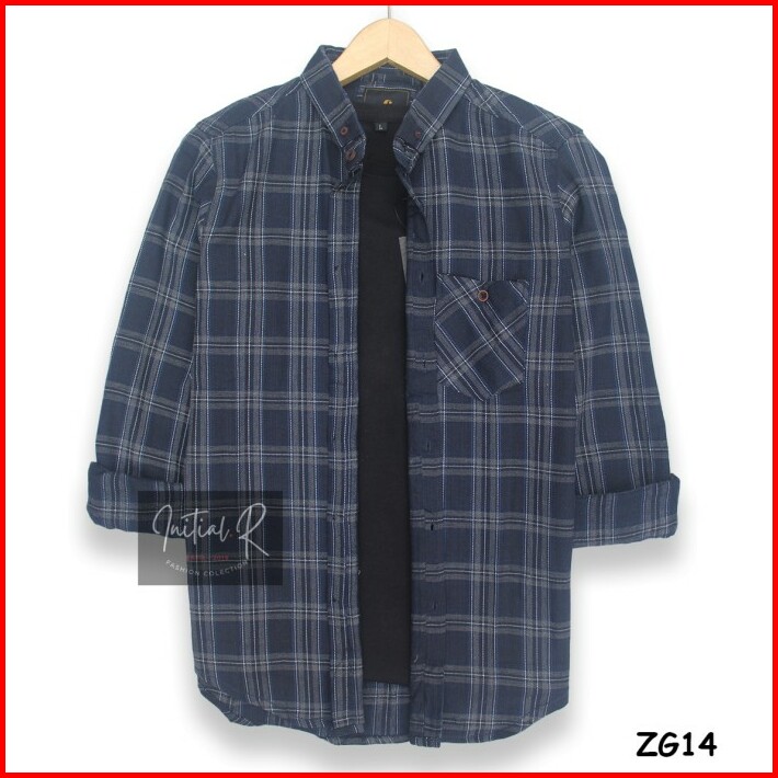 Kemeja Flanel Lengan Panjang Pria Casual Black