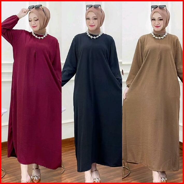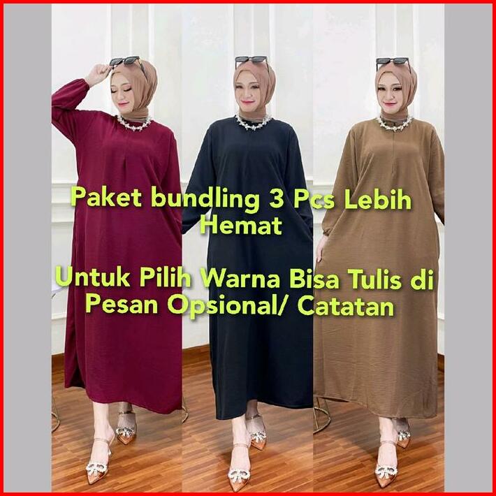 Paket 3 Pcs Gamis Abaya Crinkle Polos Pb 125 Wanita Muslim