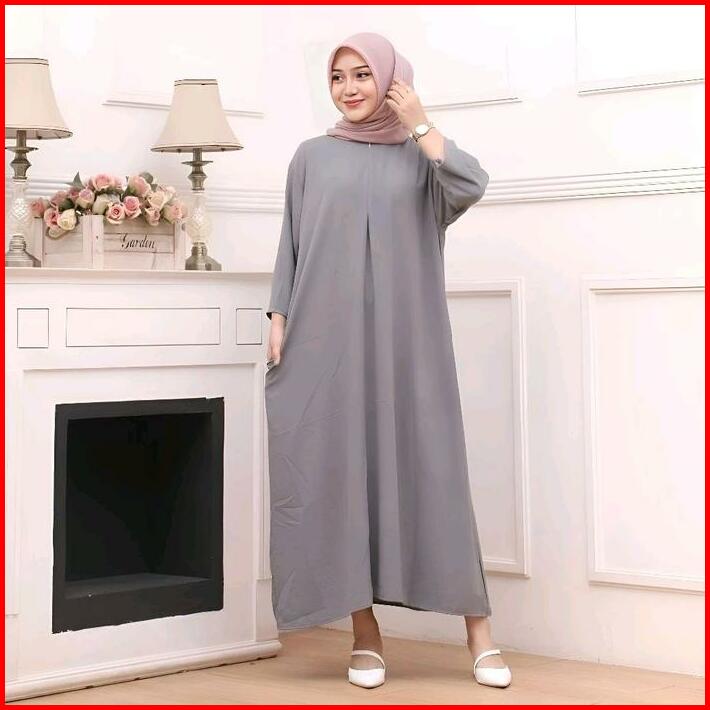 Daster Crinkle Airflow Polos Wanita Model Tangan 3 4 Gamis Busui Nyaman Panjang Dress
