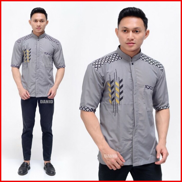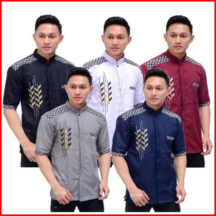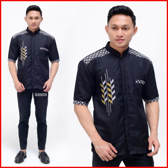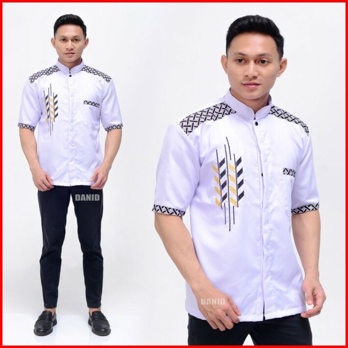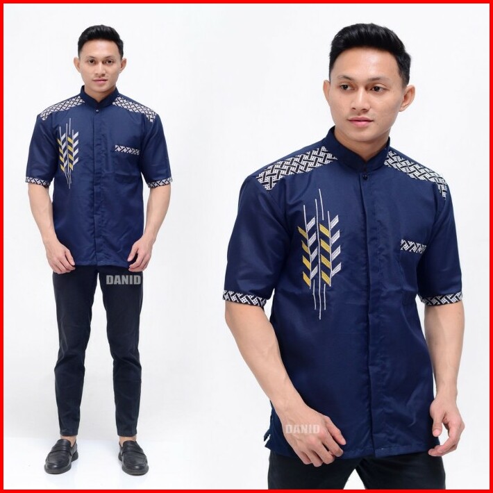 Baju Koko Pria Lengan Pendek Bordir Trendy Motif Padi