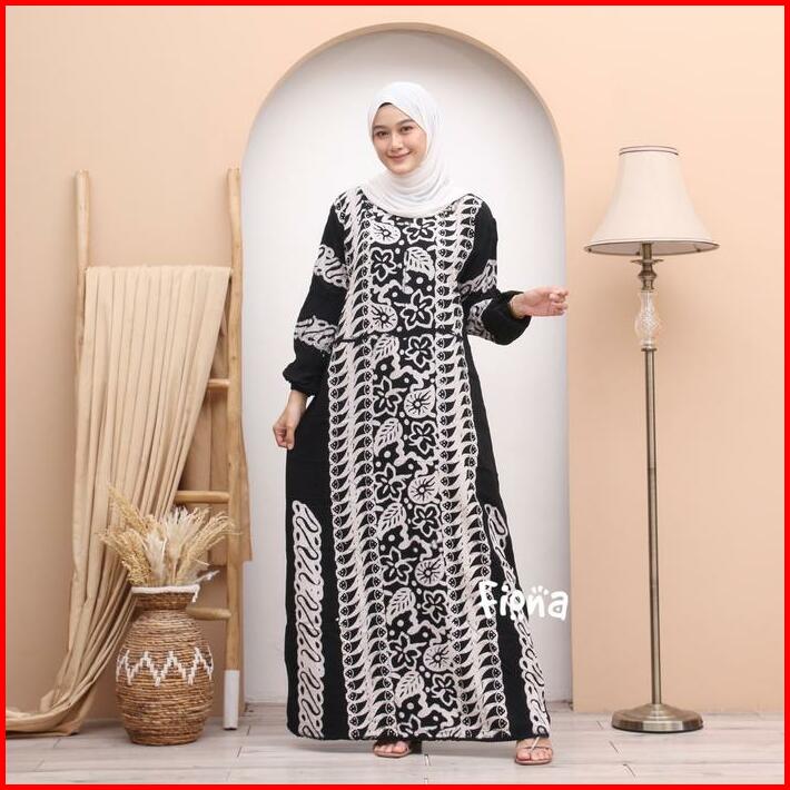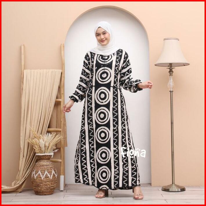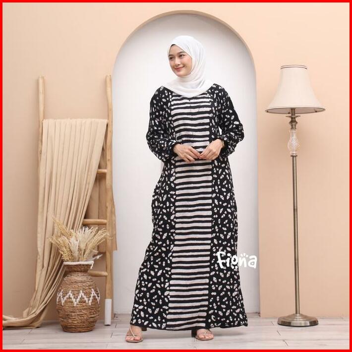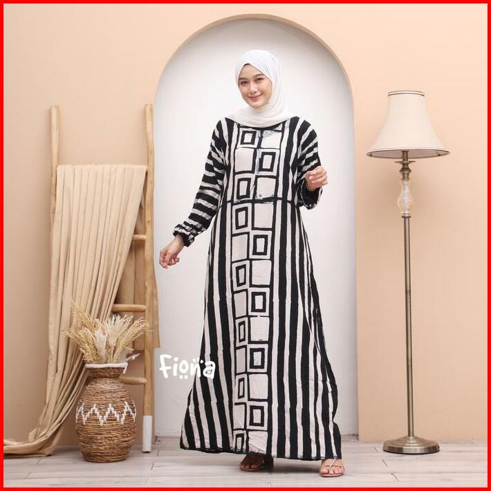 Gamis Hitam Putih Cap Exclusive Rayon Premium Panjang Karet Motif