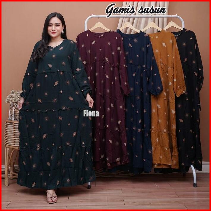 Gamis Jumbo Monica Ld 130 Rayon Premium Busui Motif Daun Dan Bunga Karet Panjang