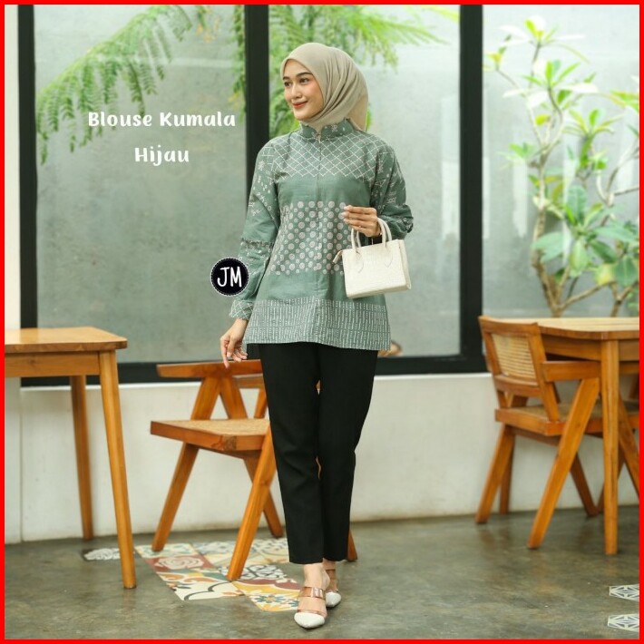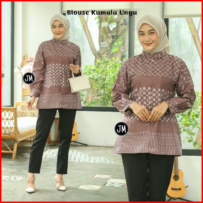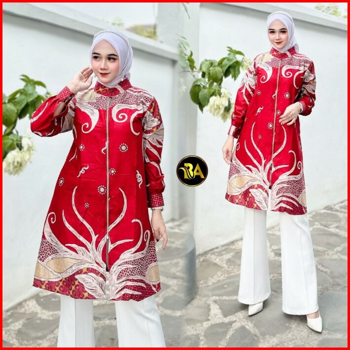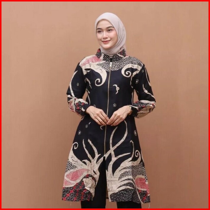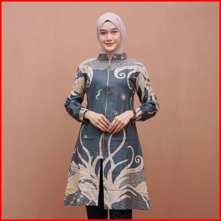 Batik Wanita Lengan Panjang Premium Blouse Zipper Modern Kemeja Wanita