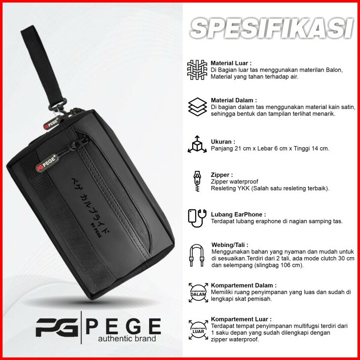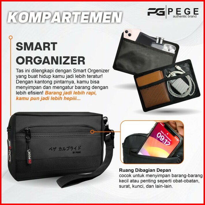 Tas Slingbag Pria 3in1 Pege Elsner Slingbag Waterproof Model Casual Elegant Bisa Pouch Dan Handbag