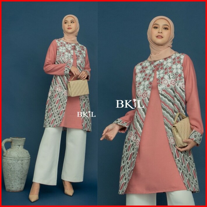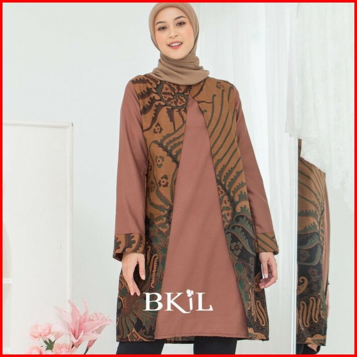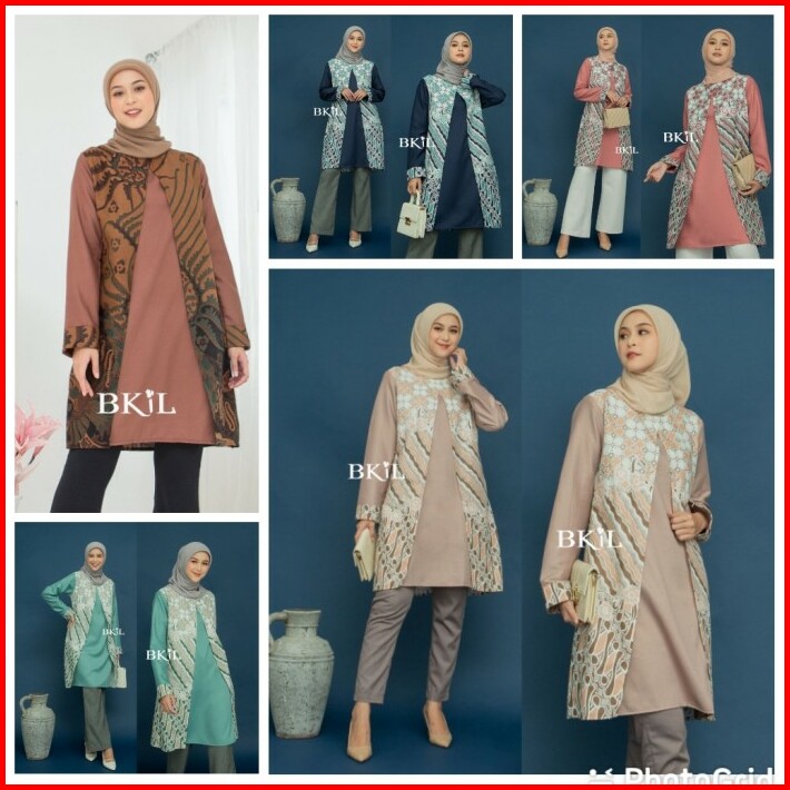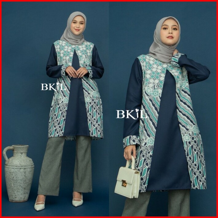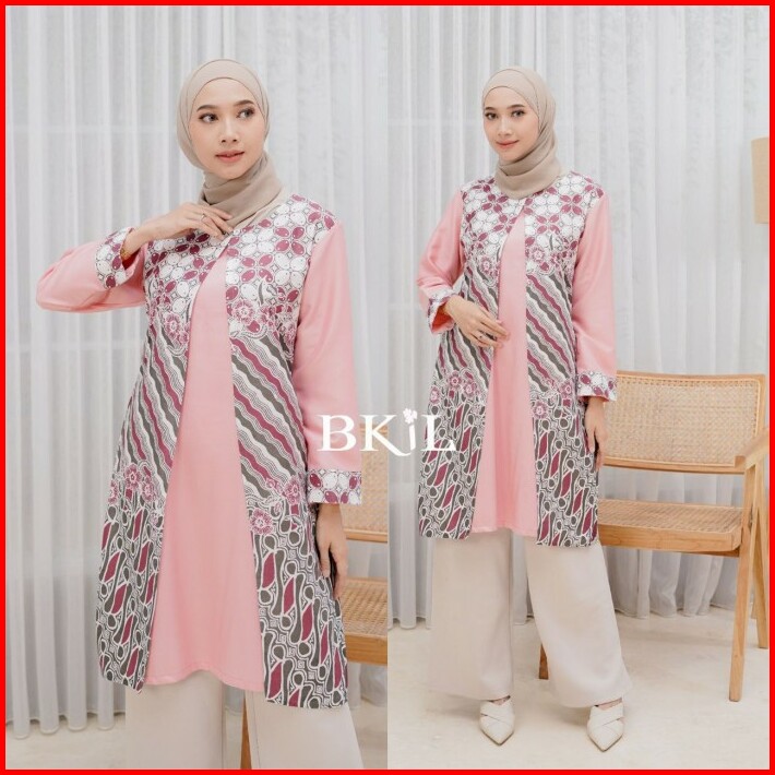 Atasan Wanita Tunik Jumbo Lengan Panjang Baju Formal Batik Kombinasi