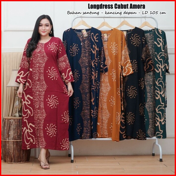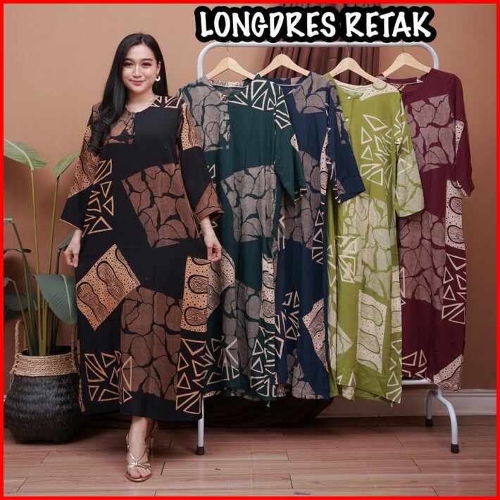 Daster Batik Lengan Panjang Long Dress Baju Santai Wanita Murah Grosir