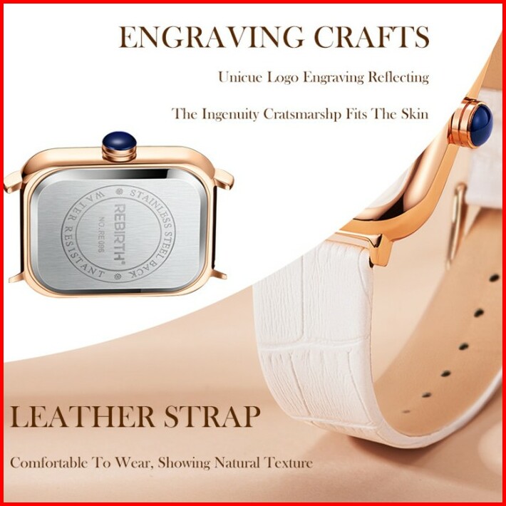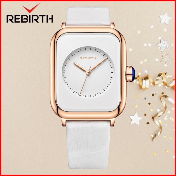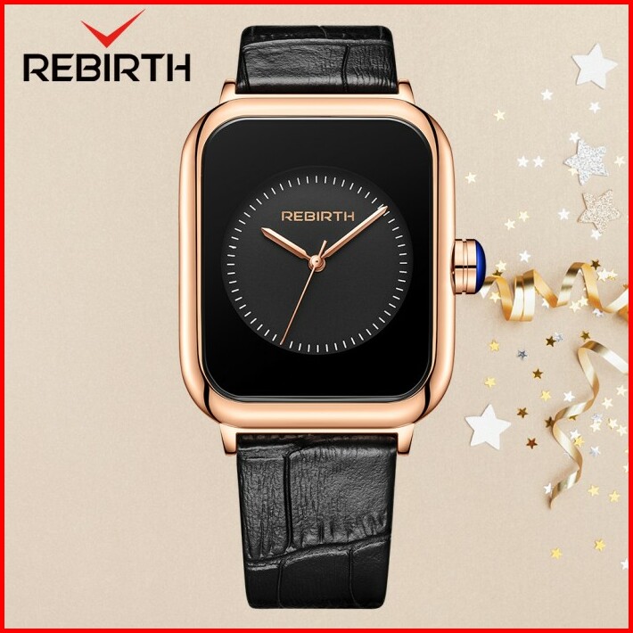 Rebirth Jam Tangan Wanita Mode Santai Squre Dial Tali Kulit Tahan Air