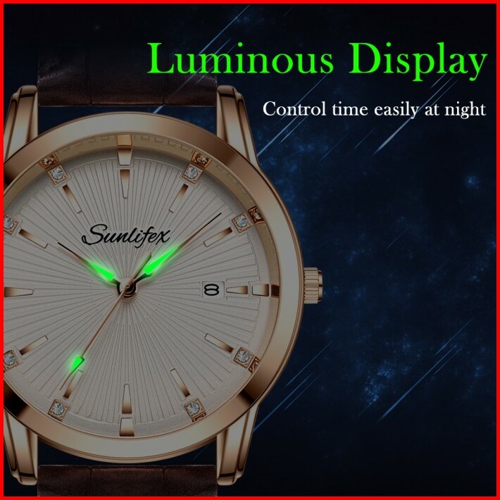 Sunlifex Jam Tangan Pria Analog Kalender Tali Kulit Jam Tangan Cowok