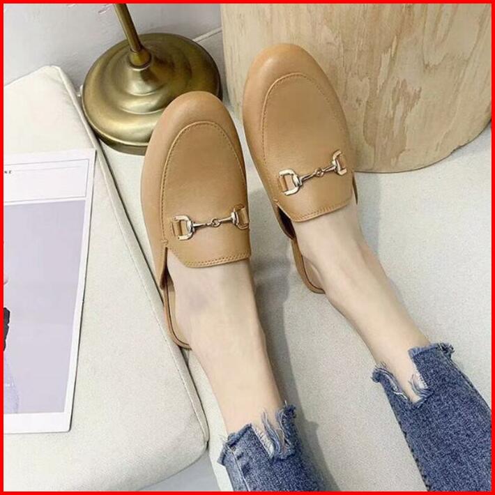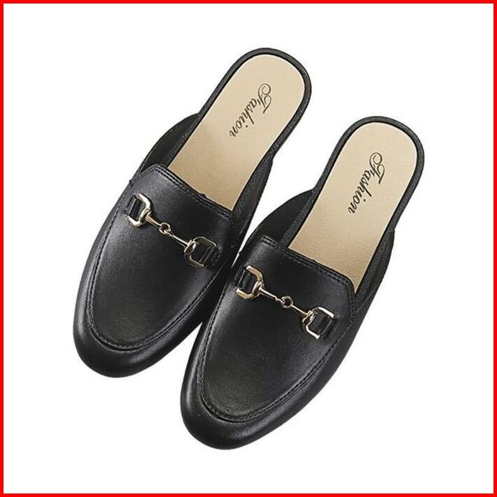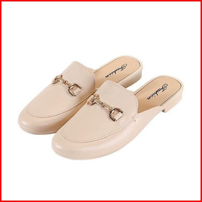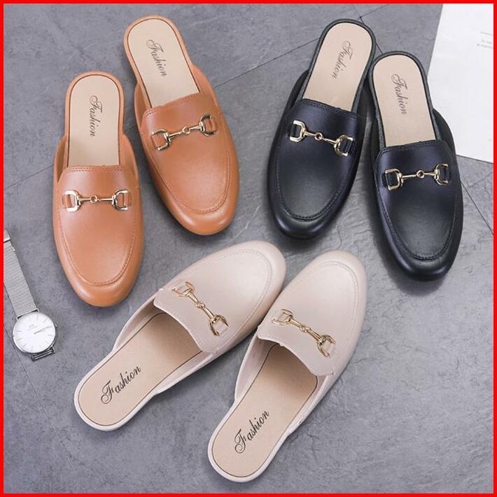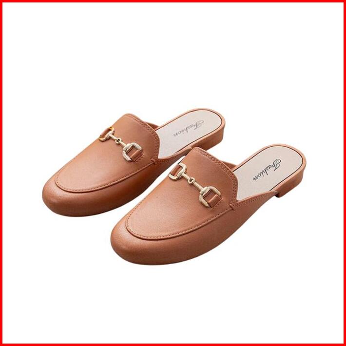 Okaido Sepatu Sandal Selop Wanita Cewek Kerja Nyaman Lembut Elegan Fashion Korea Kekinian Hitam Coklat Shoes Sendal Slip