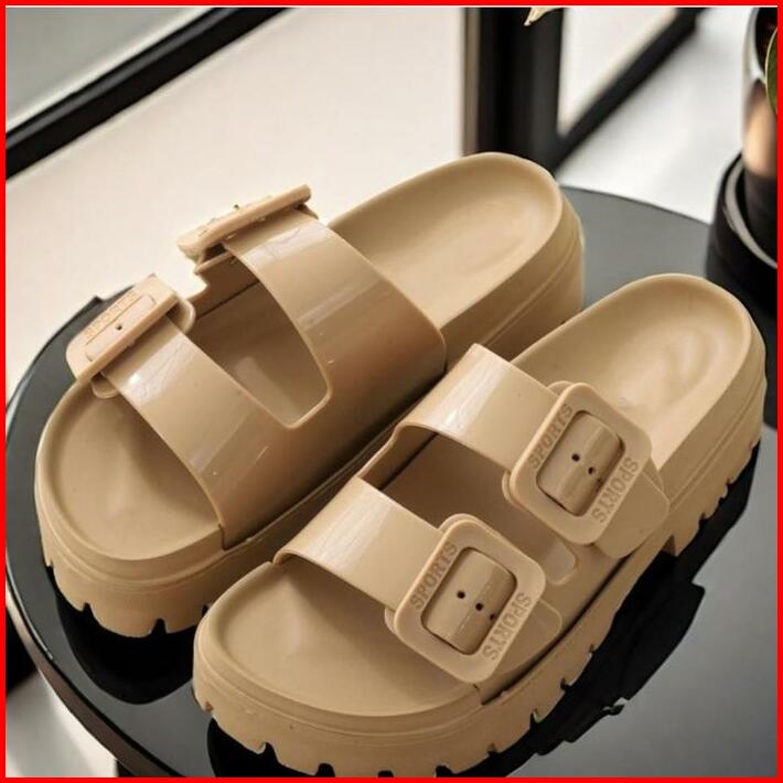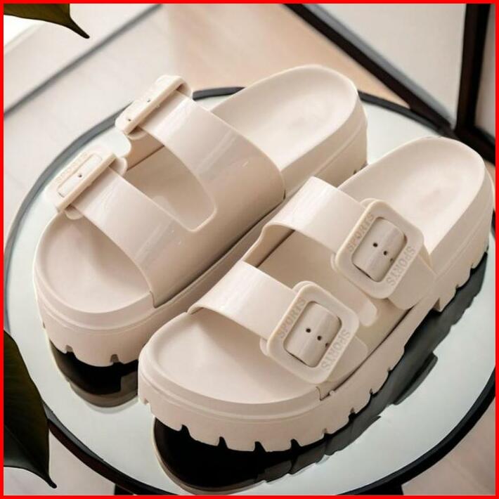 Okaido Sandal Tali Wanita Cewek Slip On Karet New Arrival Sendal Karet Jelly Hitam Putih Cream Perempuan