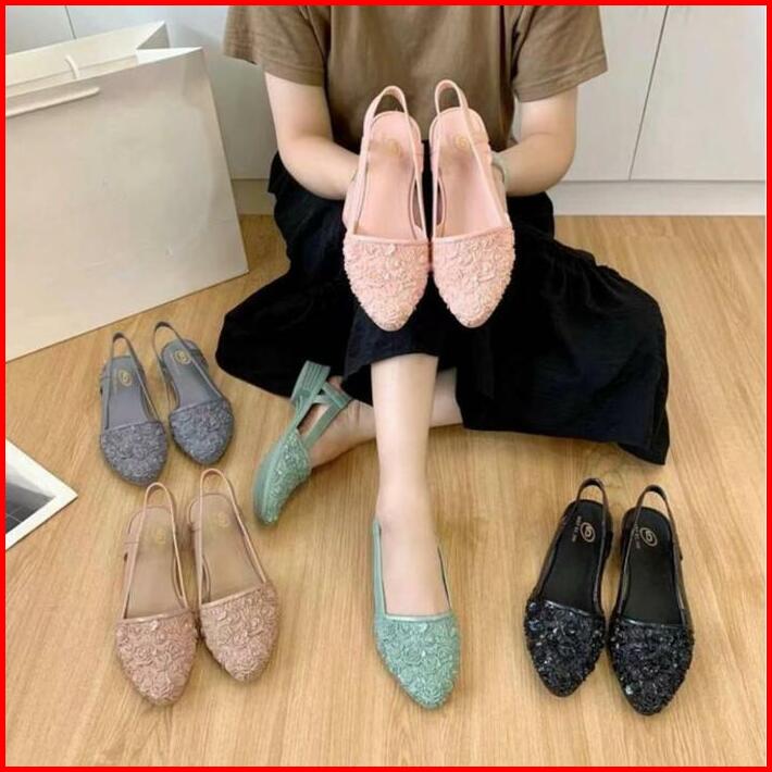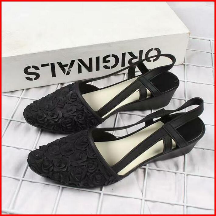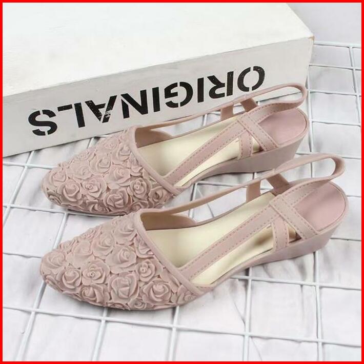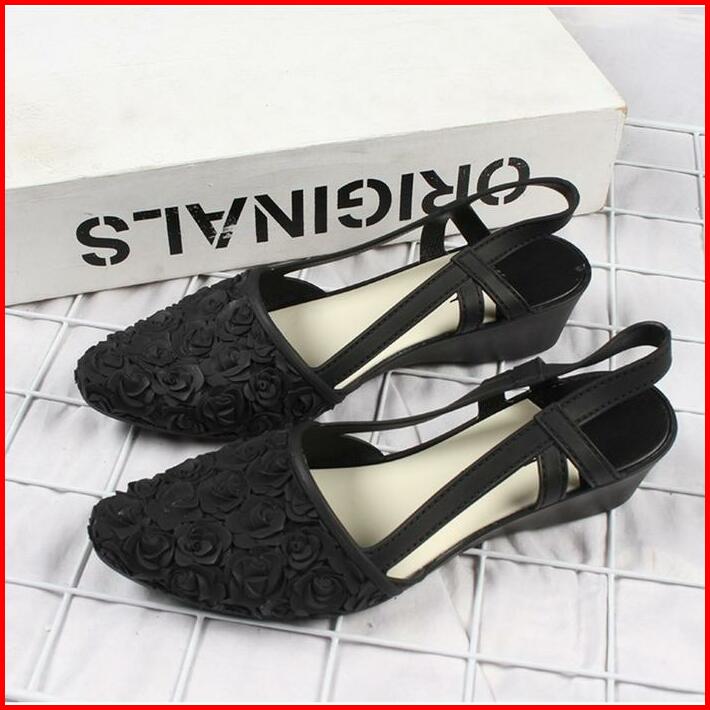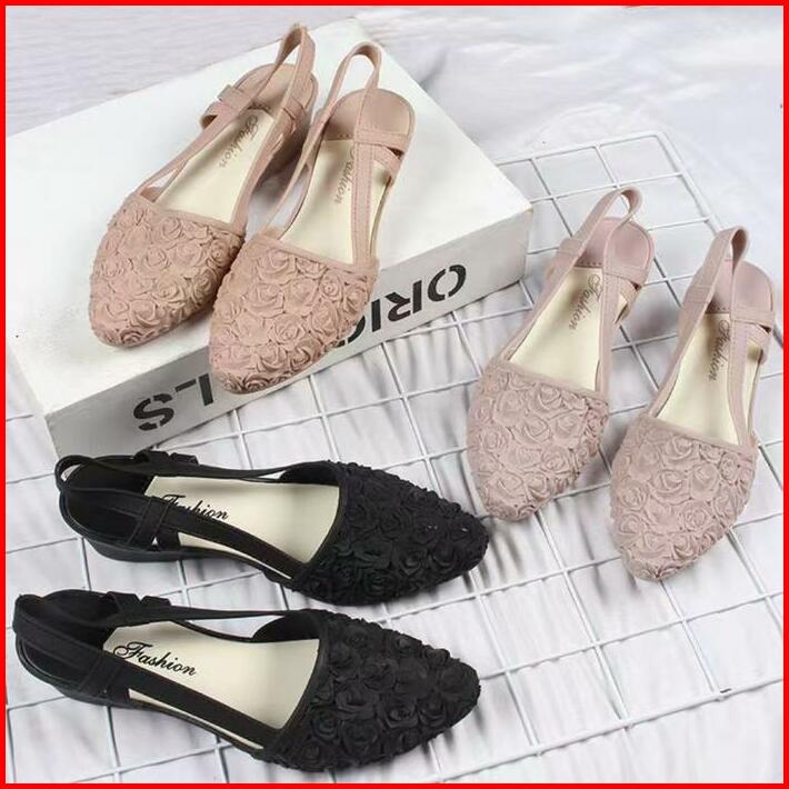 Okaido Sepatu Sandal Bunga Wanita Cewek Gaya Korea Kekinian Pink Hitam Karet Sendal Perempuan Nyaman Lembut Dan Anggun