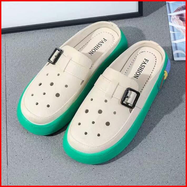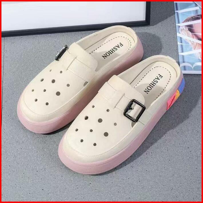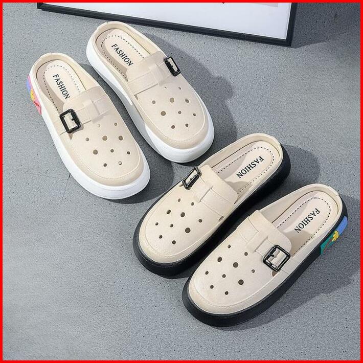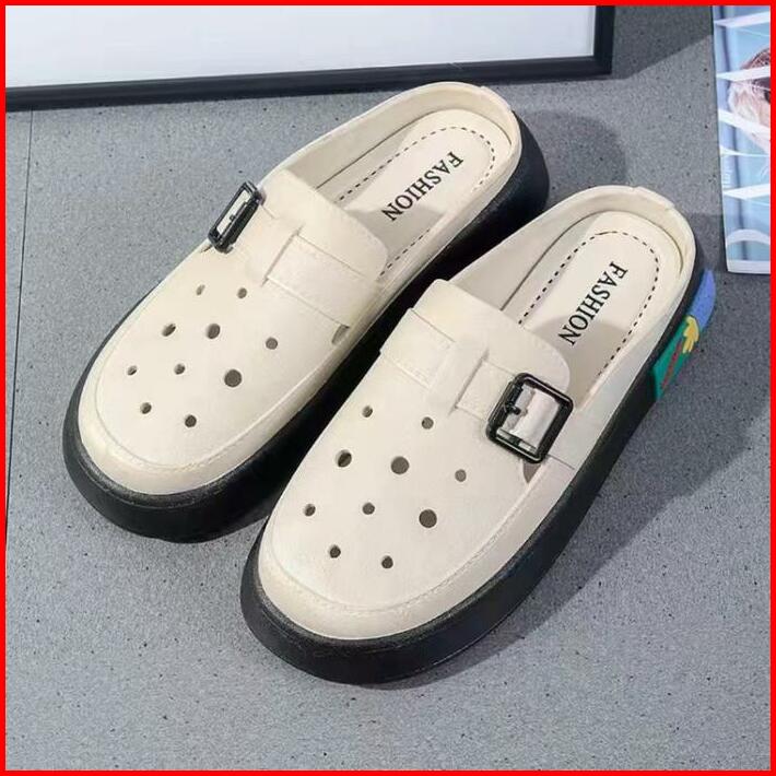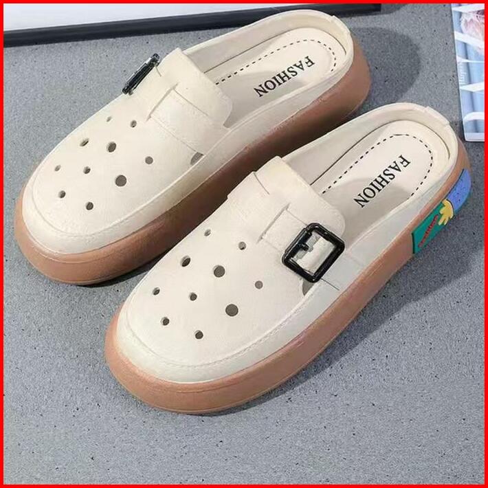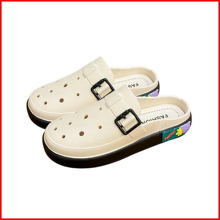 Okaido Sandal Sepatu Wanita Cewek Fashion Korea Kekinian Karet Nyaman Anti Licin Putih Cream Shoes Sendal Selop Perempua