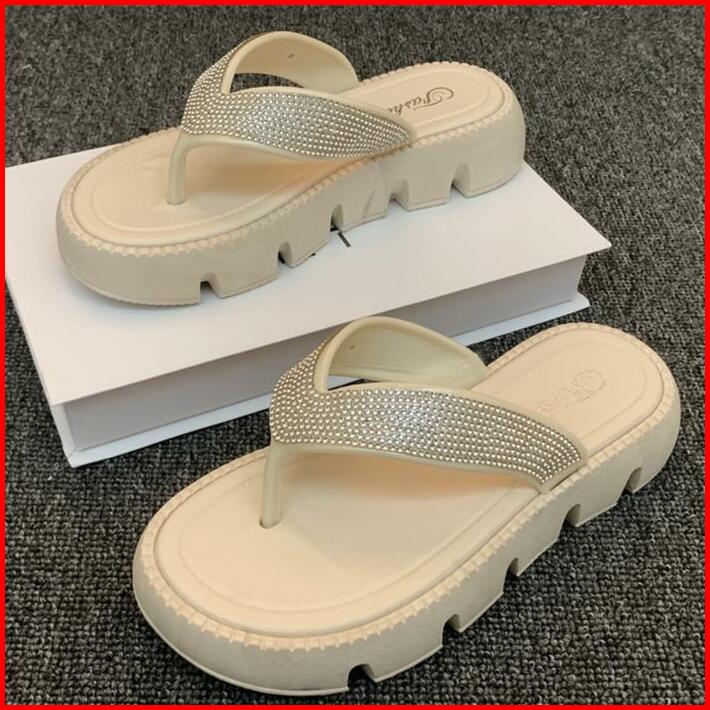 Okaido Sandal Jepit Wanita Cewek Model Korea Kristal Berlian Anggun Hitam Putih Sendal Perempuan Karet Nyaman Dan Lembut