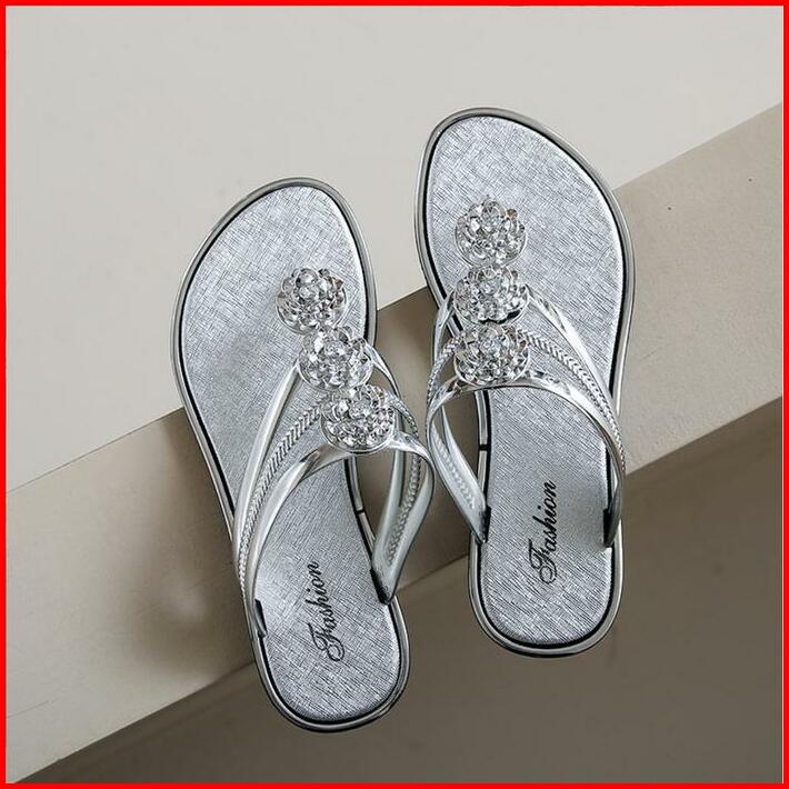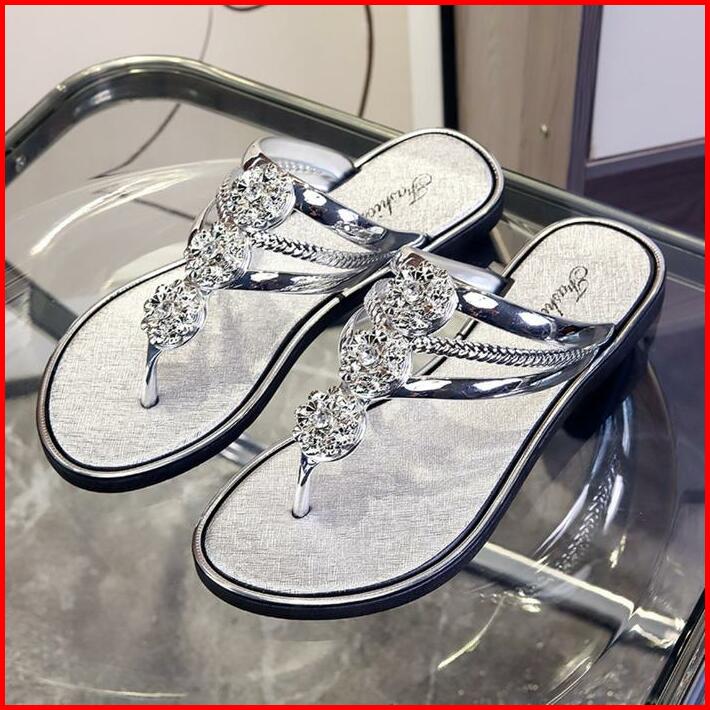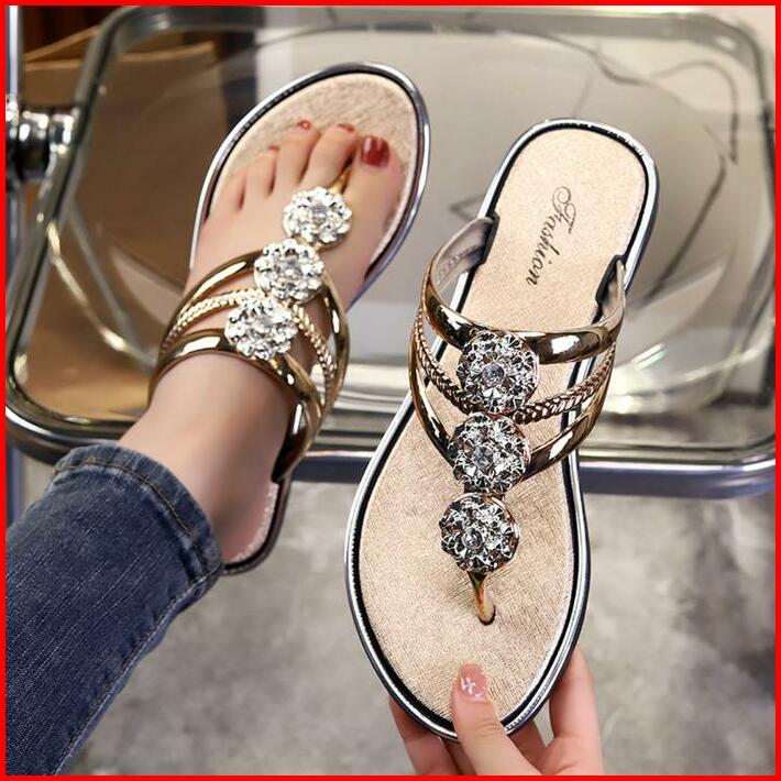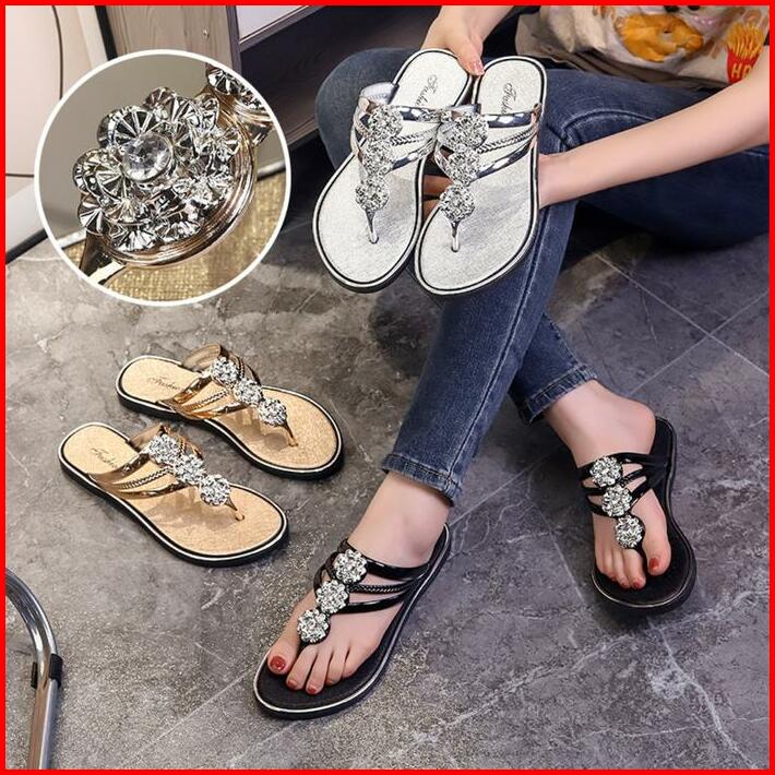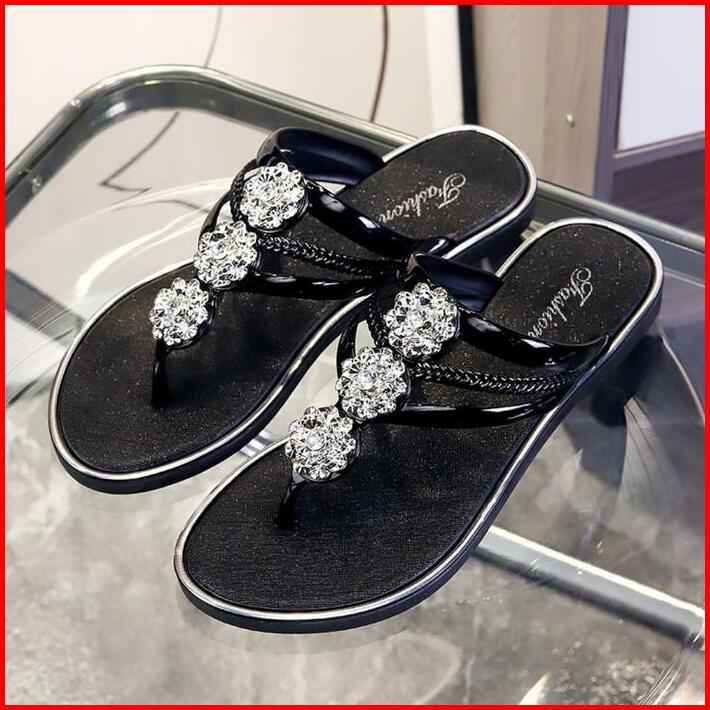 Okaido Sandal Jepit Wanita Cewek Bunga Kristal Style Korea Bahan Karet Sendal Perempuan Mewah Elegan Dan Anggun