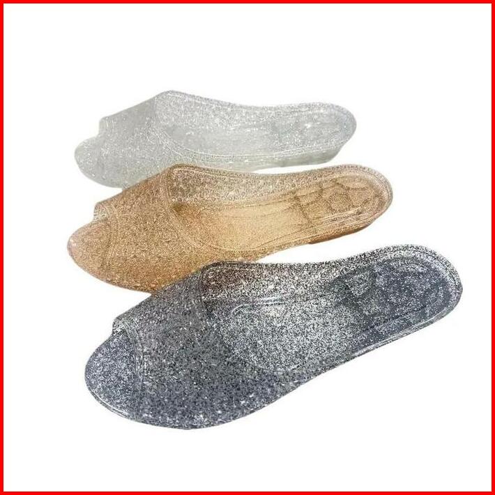 Okaido Sandal Selop Wanita Cewek Jelly Geliter Transparan Kekinian Gaya Fashion Korea Coklat Karet Sendal Perempuan Slip